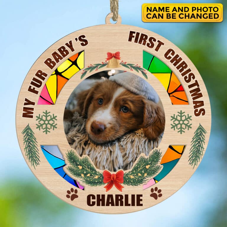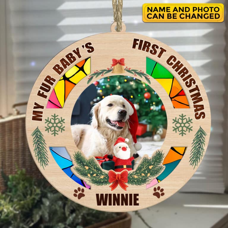 Let’s Shop Personalized Photo My Fur Baby’s First Christmas With Name 1st Xmas Dog Cat Pet Suncatcher Ornament – Custom Christmas Gifts!