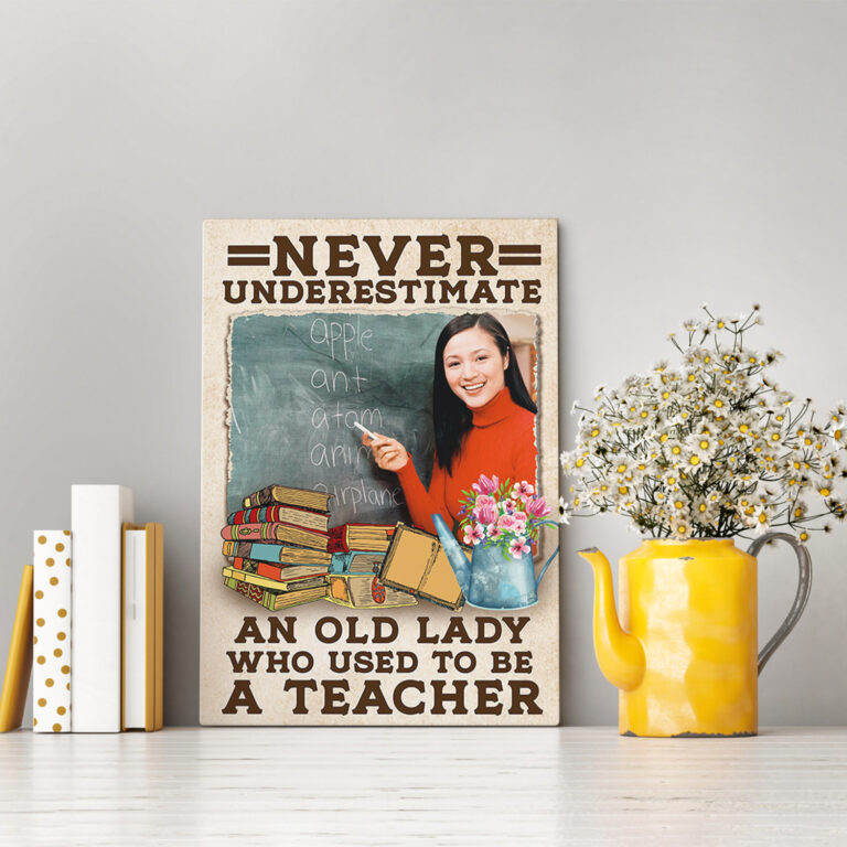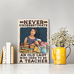 Let’s Shop Personalized Photo Never Underestimate An Old Lady Who Used To Be A Teacher Framed Canvas – Unframed Poster!