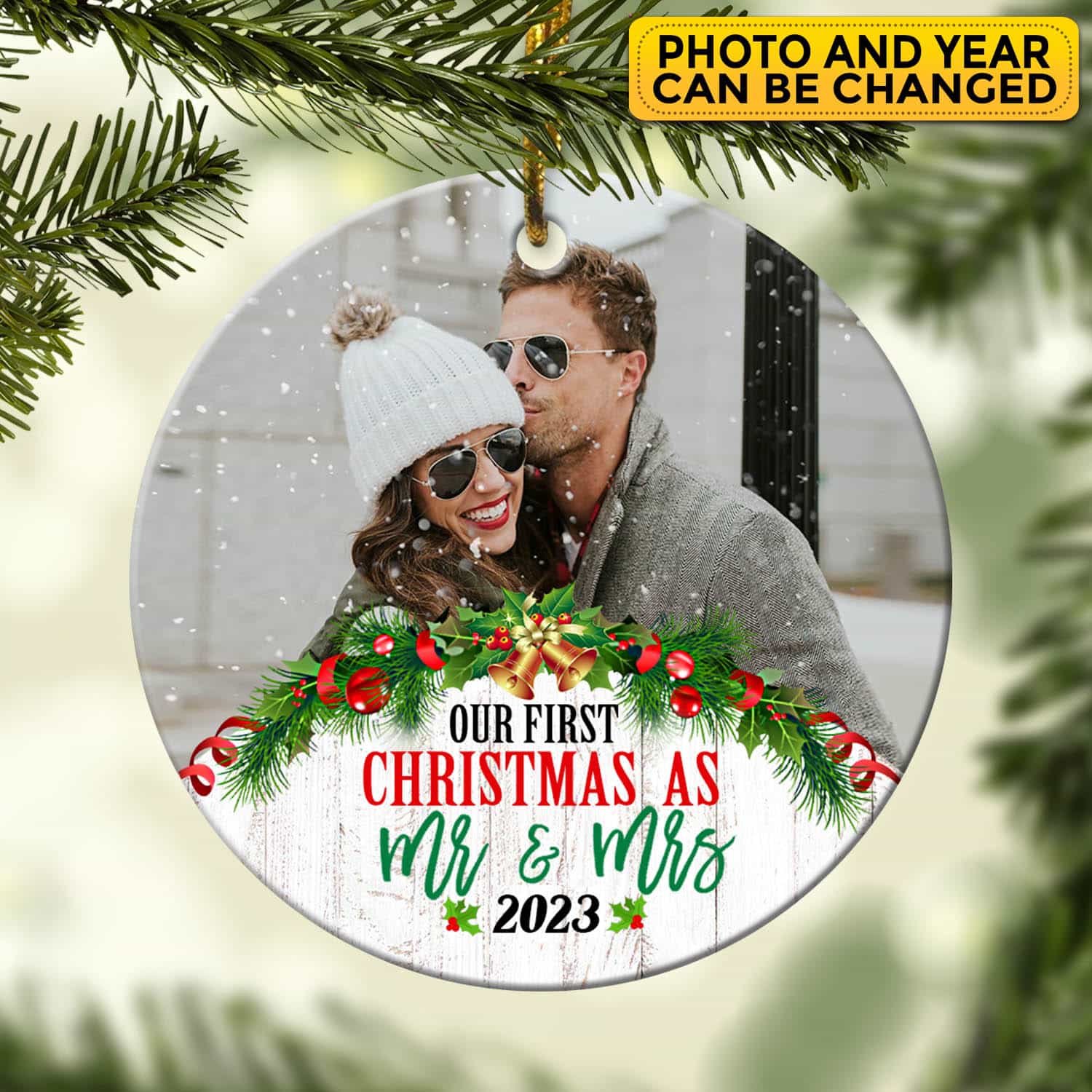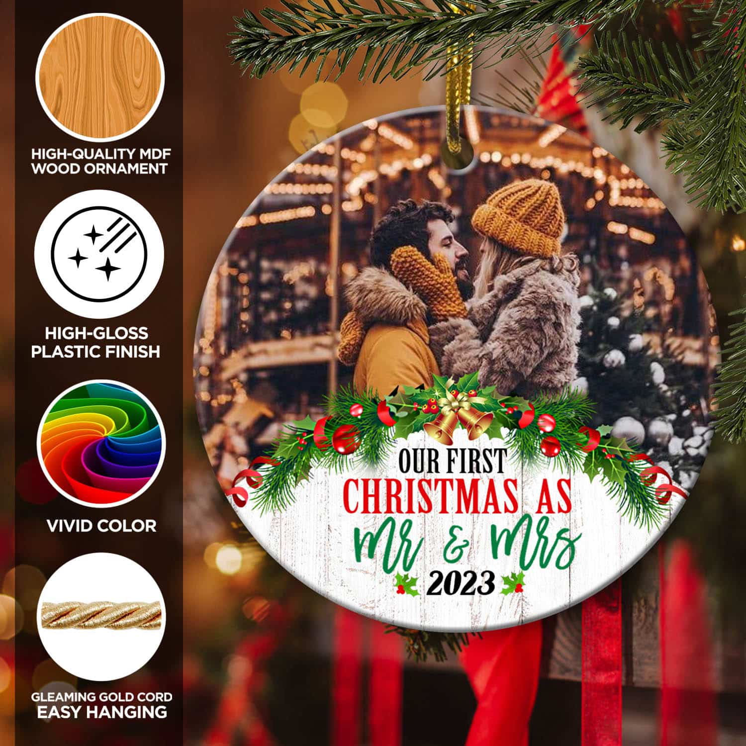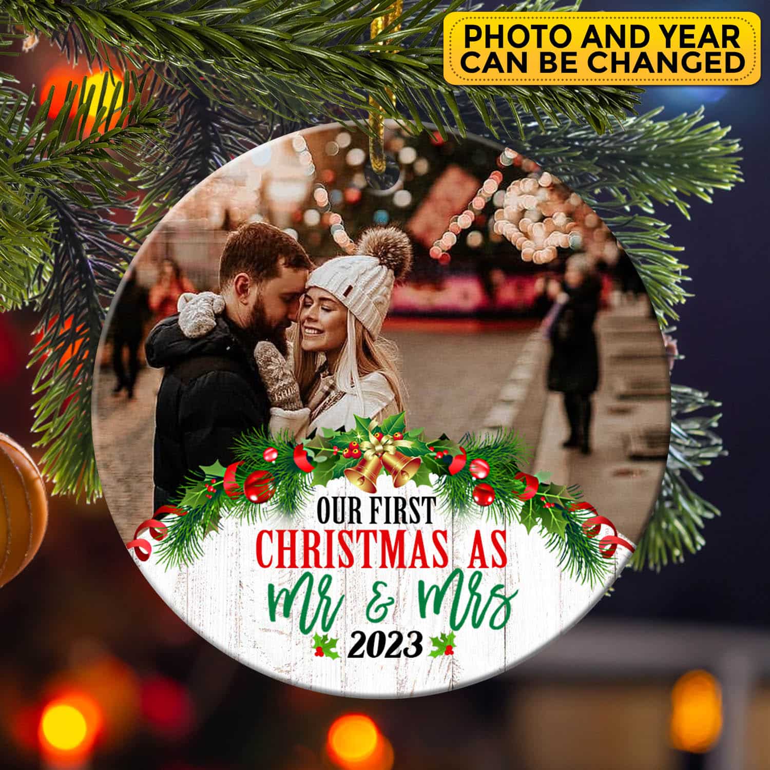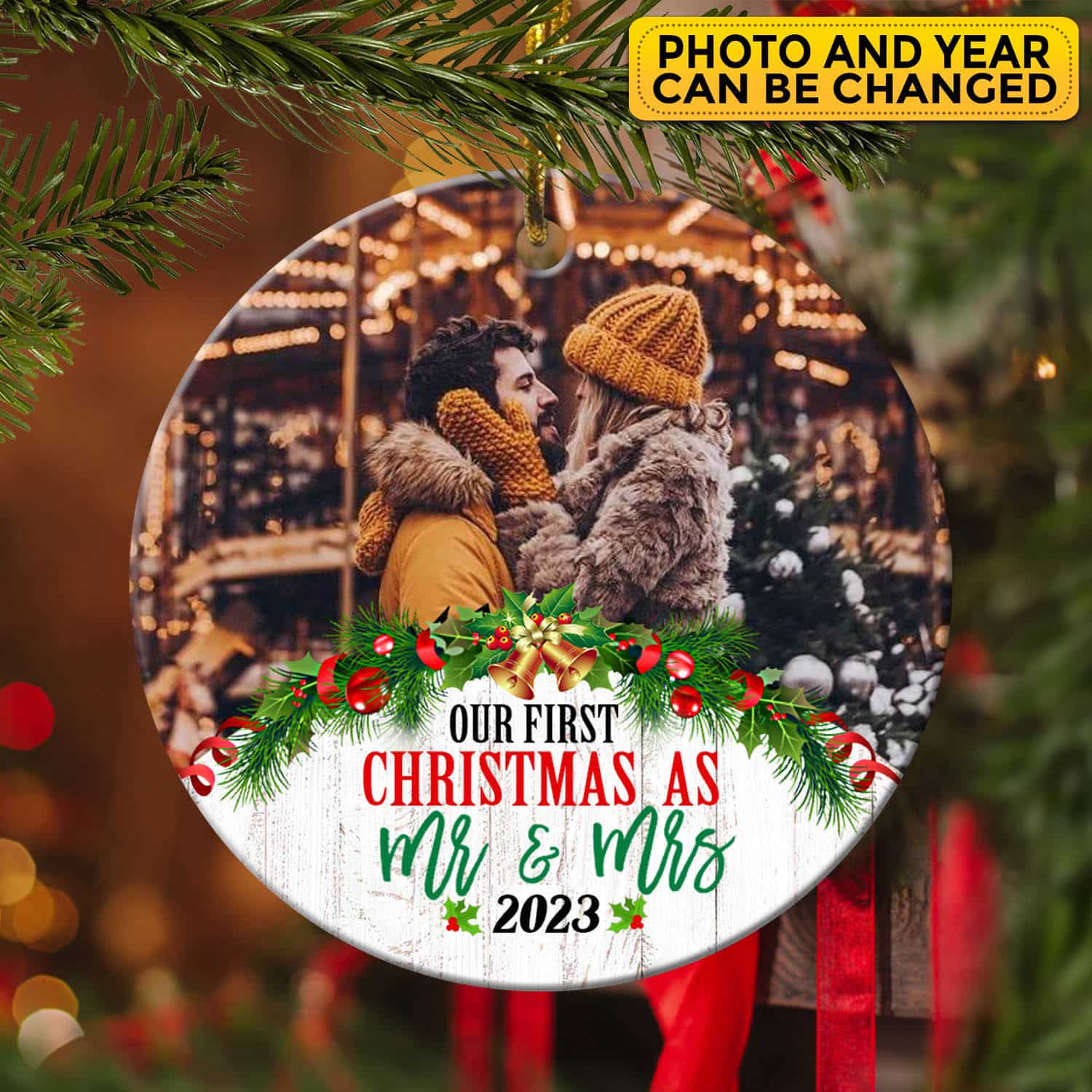 Let’s Shop Personalized Photo Our First Christmas As Mr and Mrs 2023 Christmas Ornament Keepsake – First Christmas Gifts for Her Him!