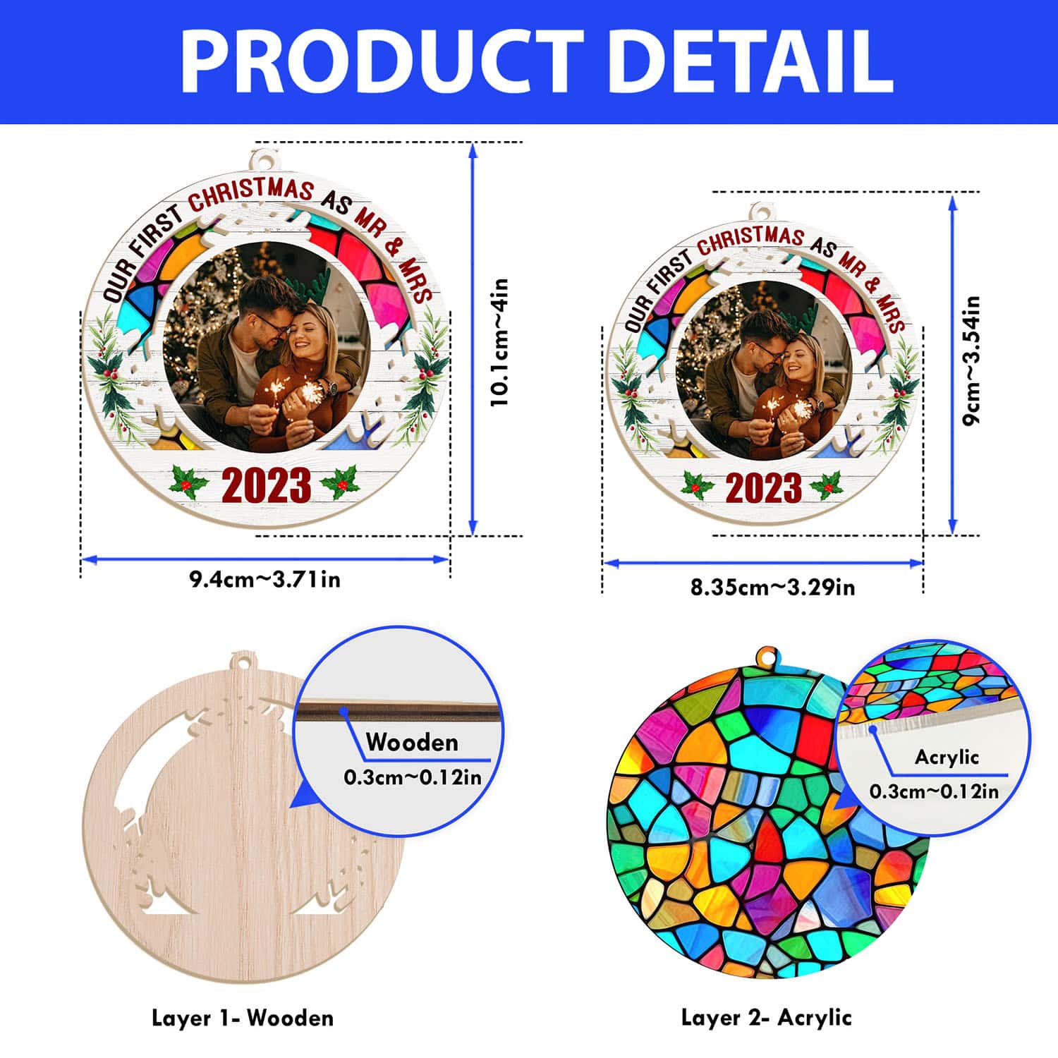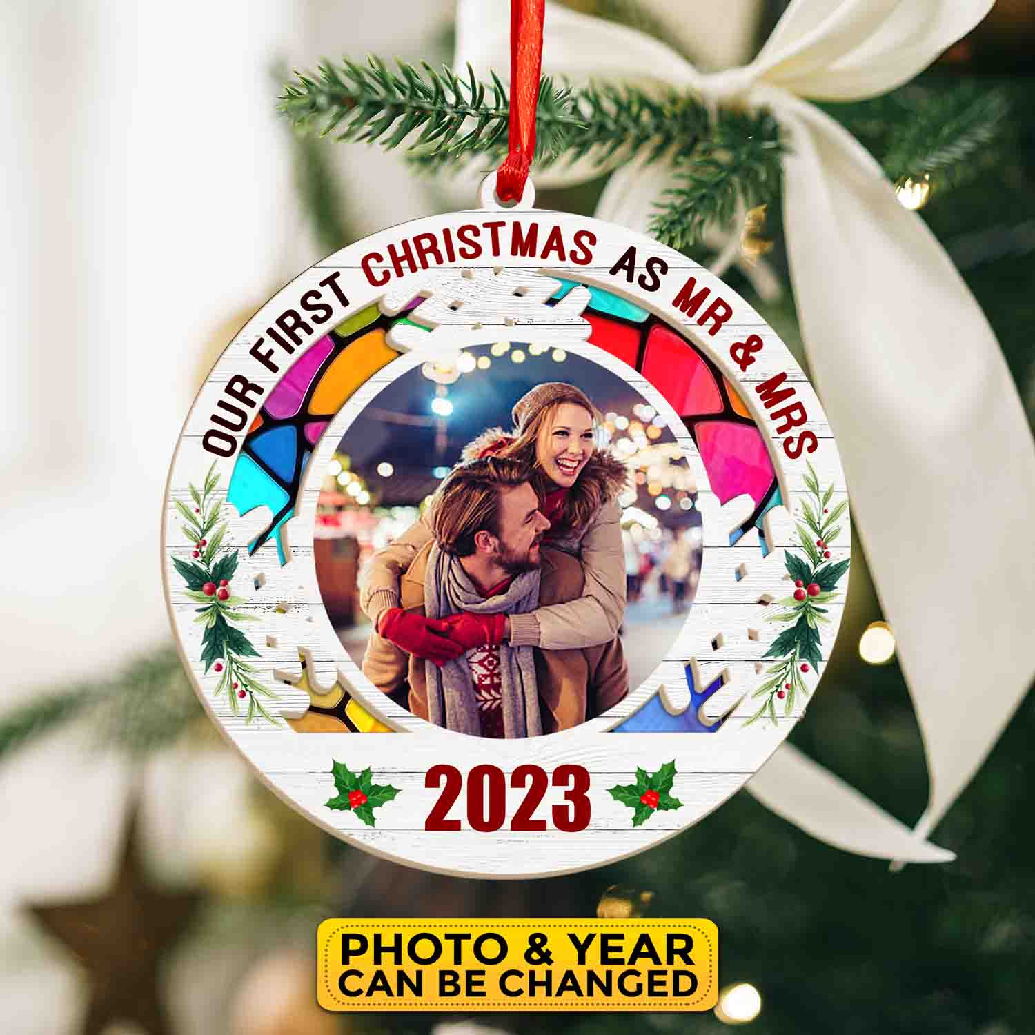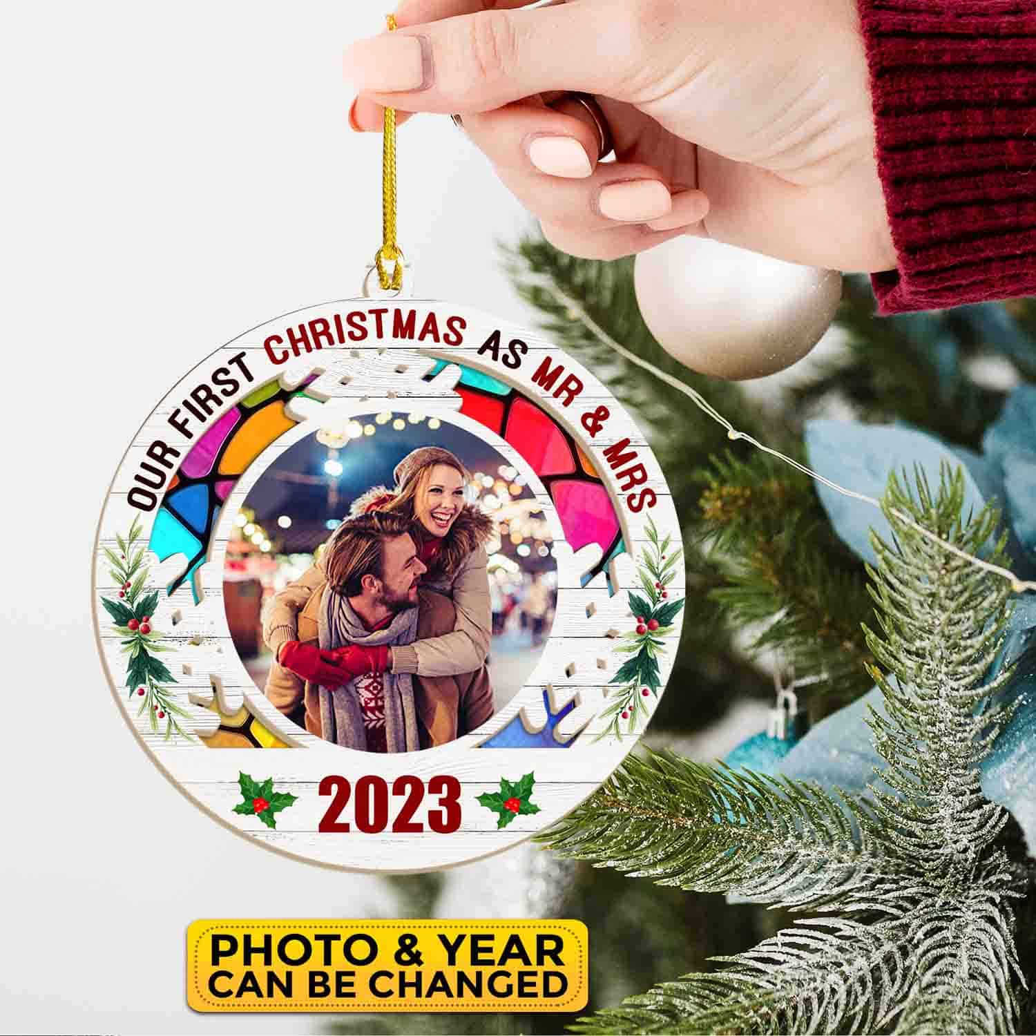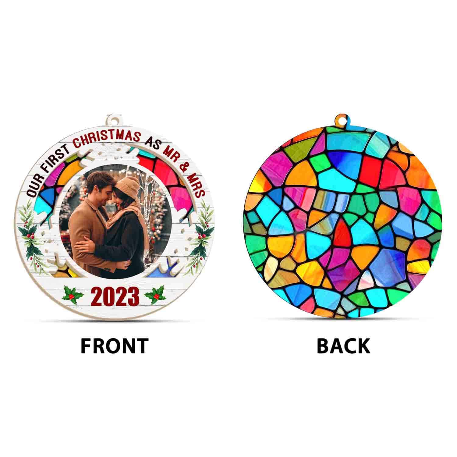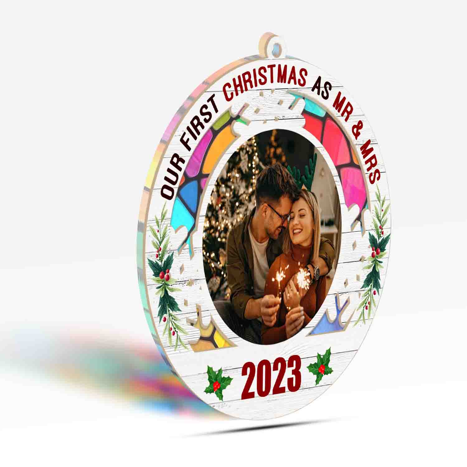 Let’s Shop Personalized Photo Our First Christmas as Mr and Mrs 2023 Suncatcher Ornament – First Christmas Married Gifts for Her Him!