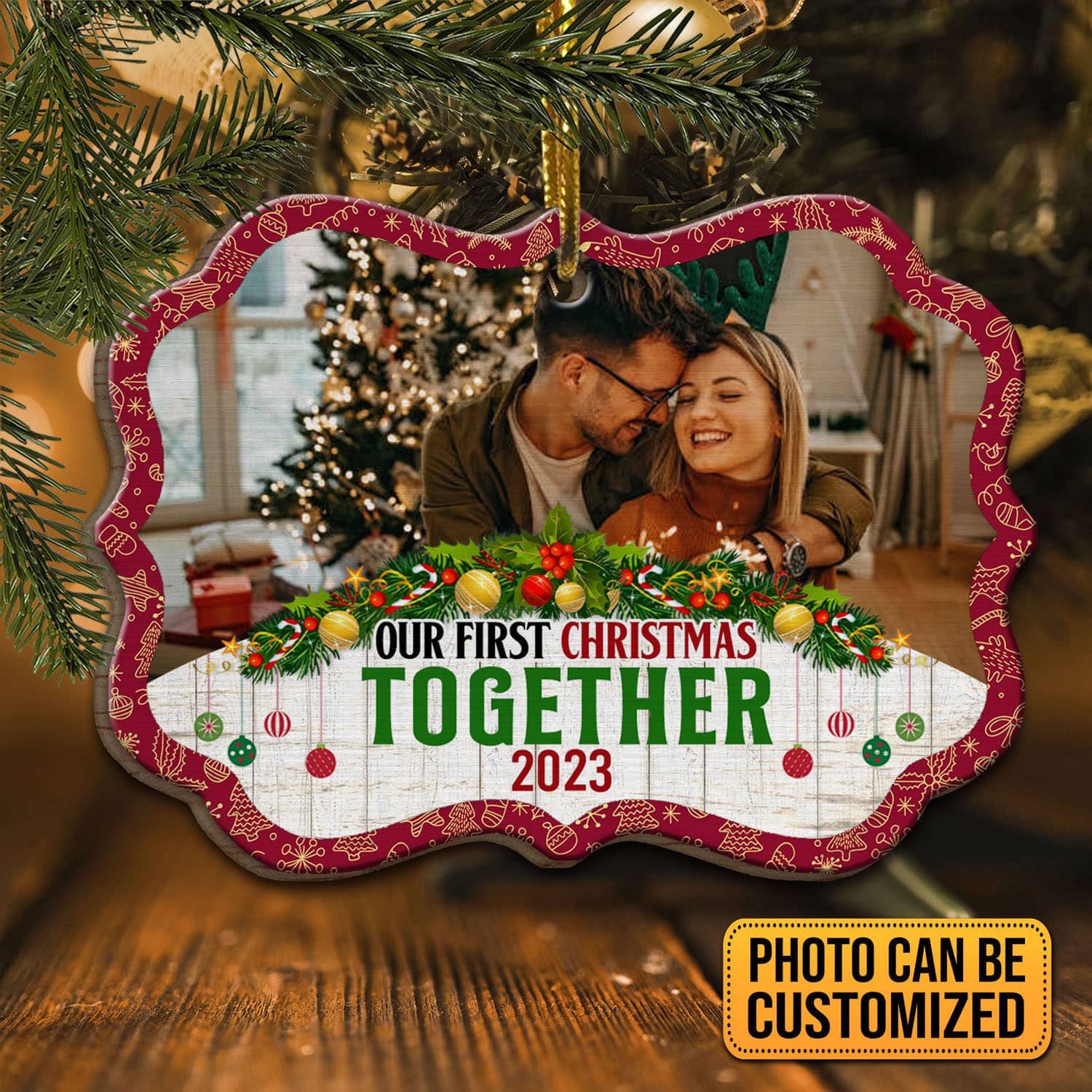 Let’s Shop Personalized Photo Our First Christmas Together 2023 Medallion Ornament Keepsake – First Christmas Married Gifts for Her Him!