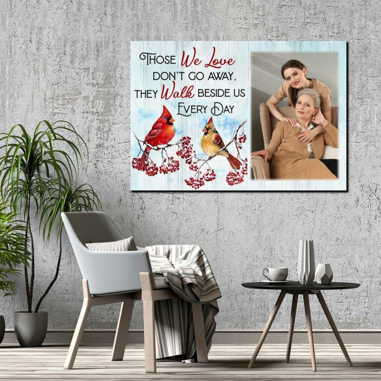 Let’s Shop Personalized Photo Those We Love Don’t Go Away They Walk Beside Us Every Day Cardinal Memorial Canvas Prints!