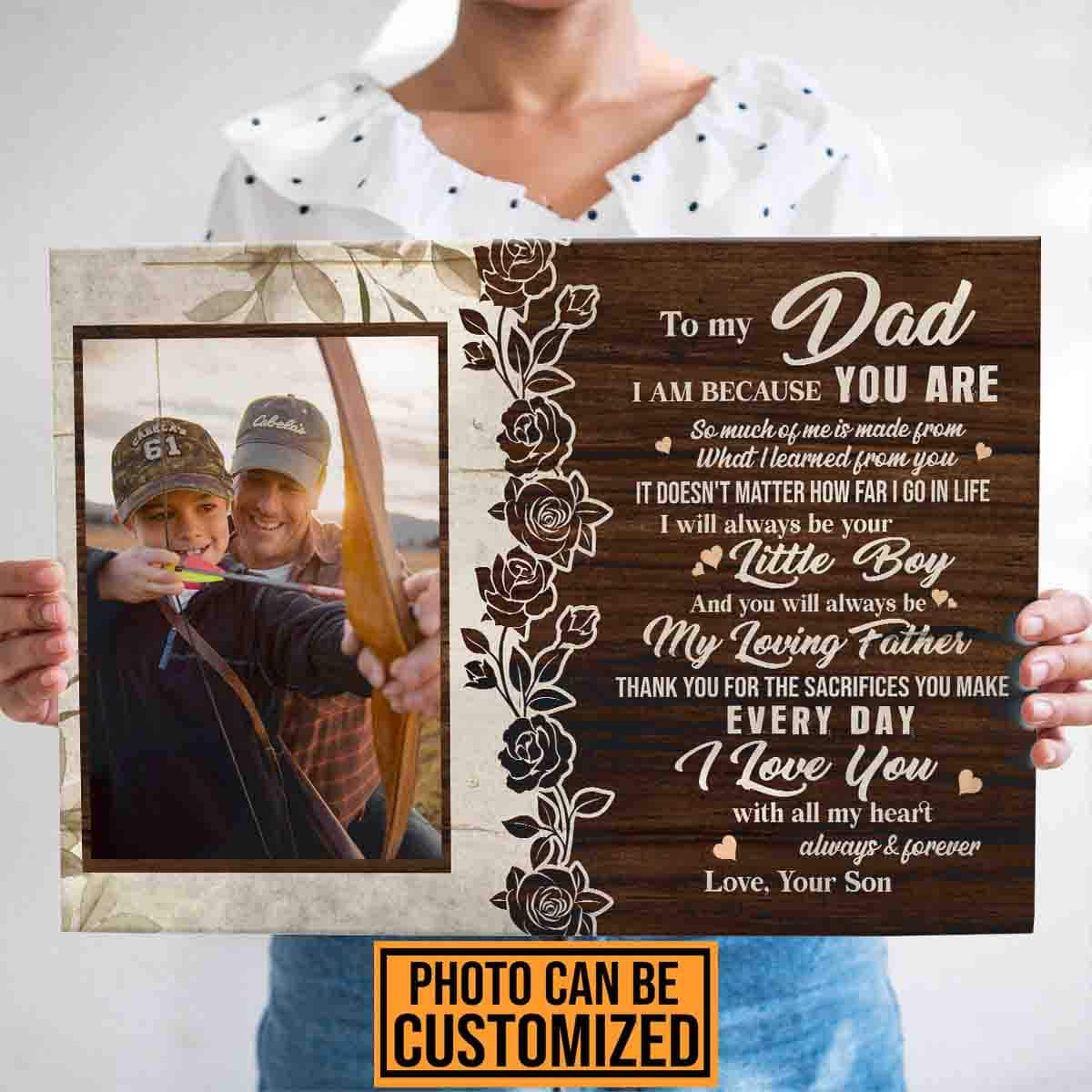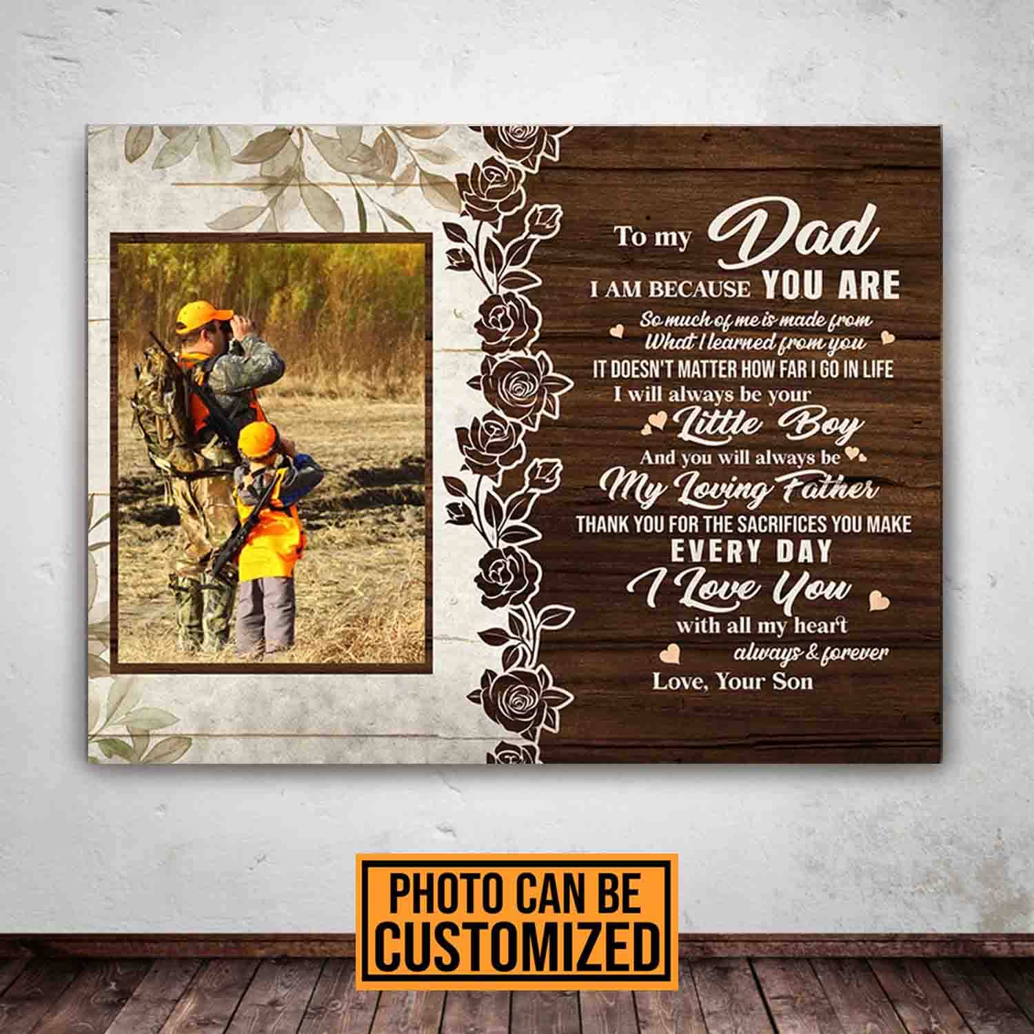 Let’s Shop Personalized Photo To Dad I Am Because You Are From Son Framed Canvas – Unframed Poster Wall Art!