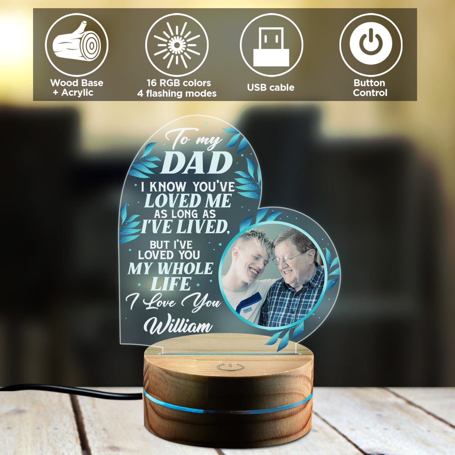 Let’s Shop Personalized Photo To My Dad I’ve Loved You My Whole Life Night Light Father’s Day 2023 Gift!