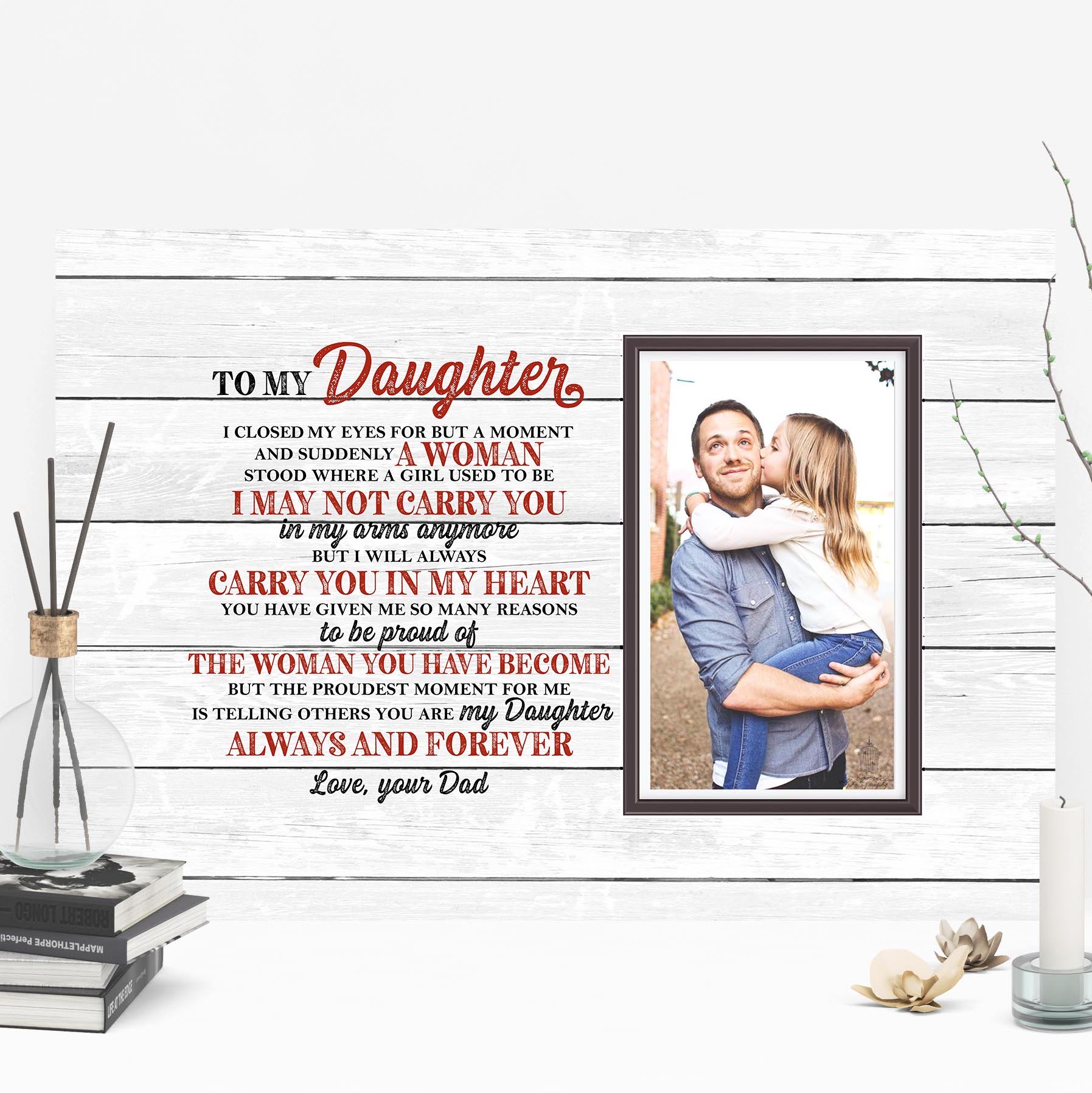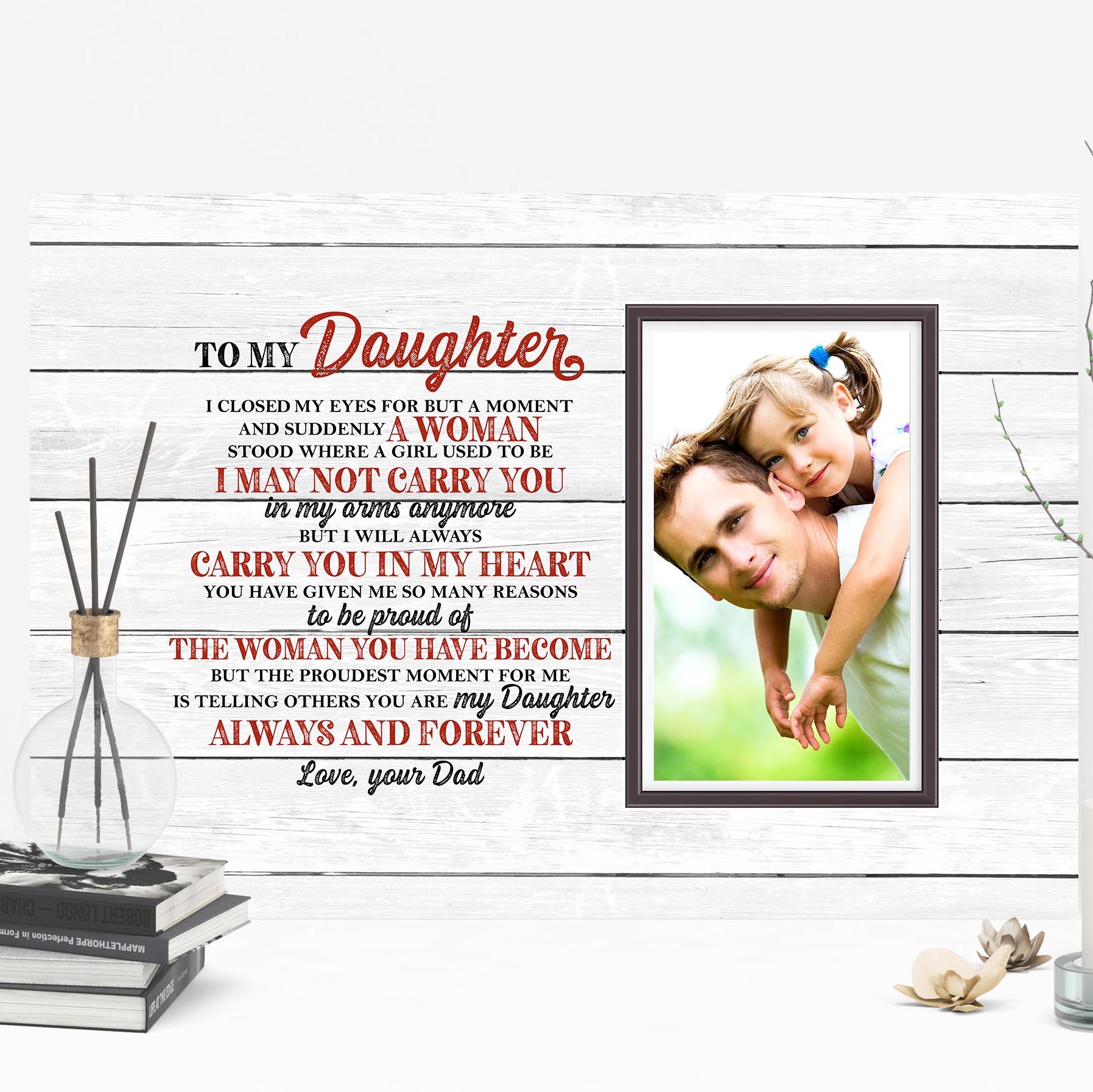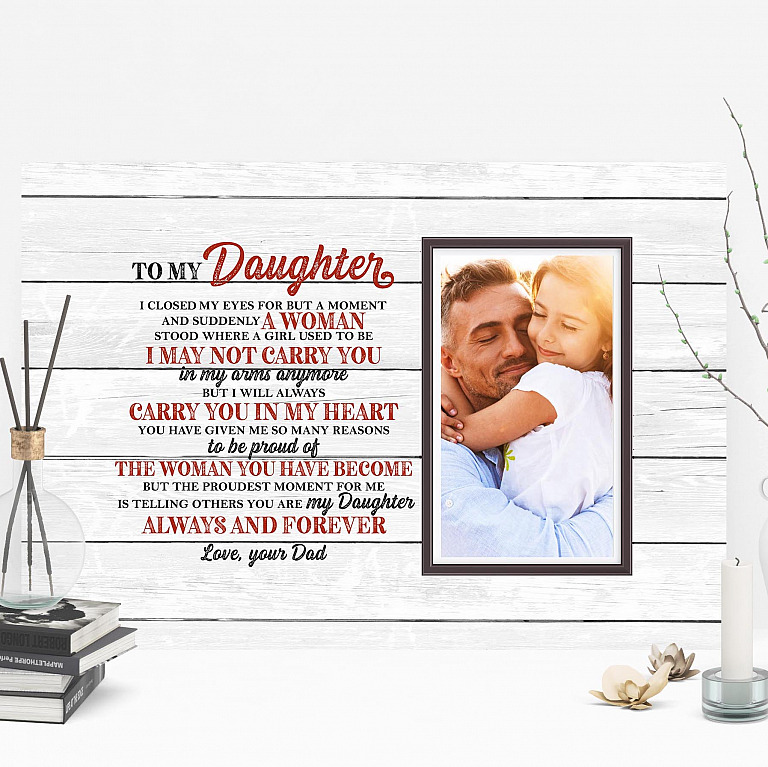 Are you spending too much time to find creative merchandise for you or suitable & special gifts for your mommy, your daddy, your son, your daughter, your children, your friends or someone you love? The struggle is over because we have various Daughter Canvas Wall Art from Dad, Daughter Gifts from Dad Canvas, to My Daughter Love Dad Poster, Daughter Gifts for Women, Customized Photo Gift for Daughter from Dad, Customized Photo Frame Father Daughter which will make perfect presents for your beloveds. In order to make your present stand out, we have created lots of unique and awesome customized photo gifts & personalized designs.