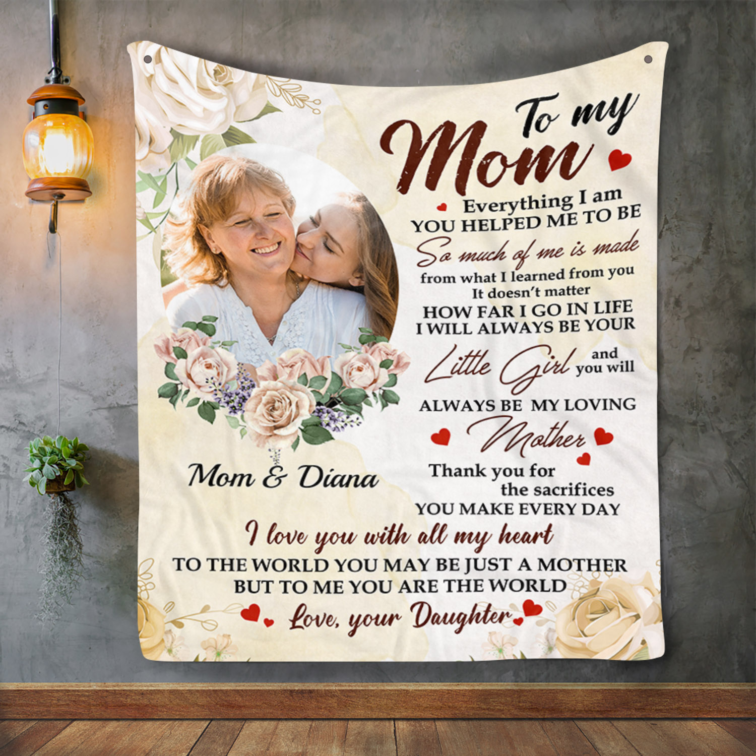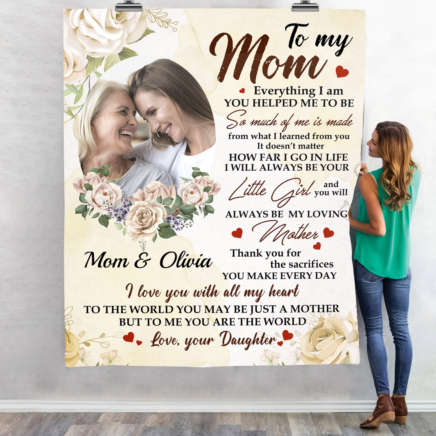 Let’s Shop Personalized Photo To My Mom Everything I Am You Helped Me To Be So Much Of Me Is Made From Fleece Blanket!