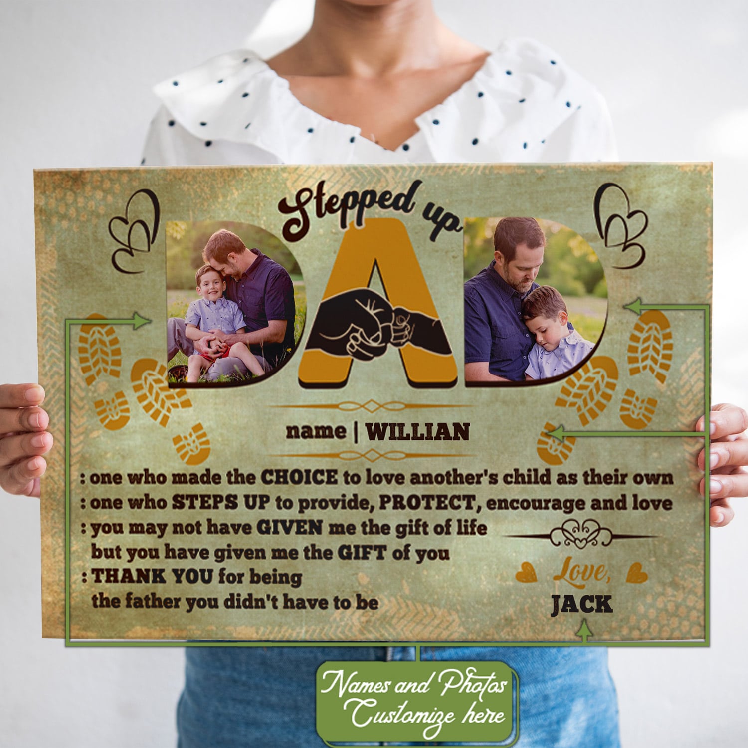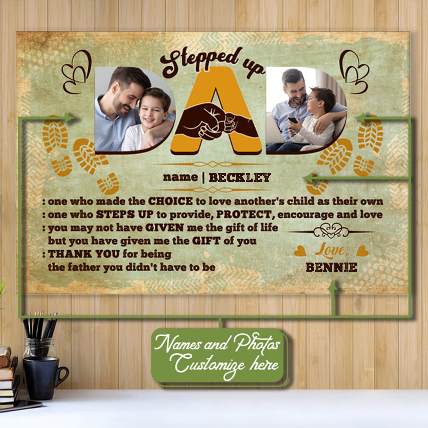 Let’s Shop Personalized Photo To My Stepdad Fun Bonus Dad Definition Father’s Day Stepped Up Dad Saying Canvas Poster!