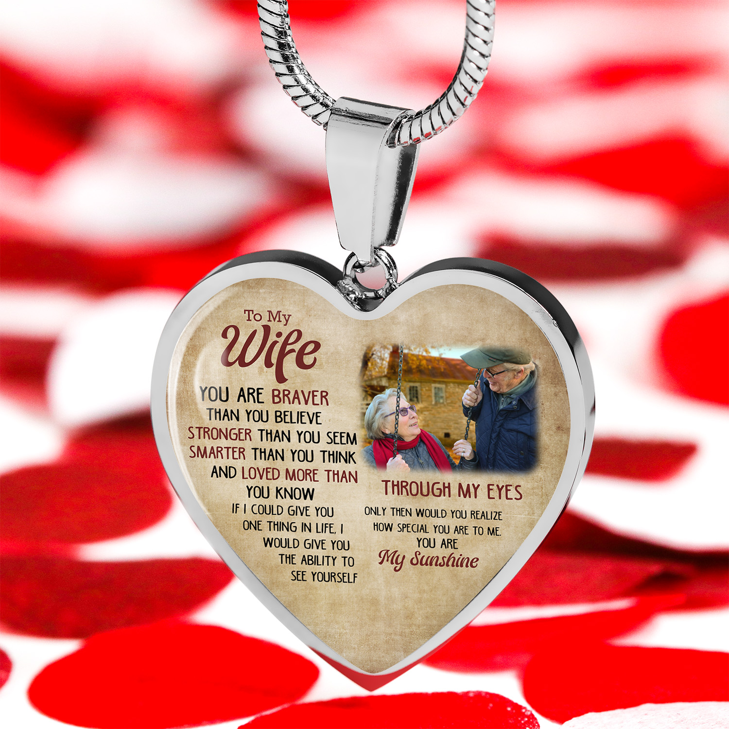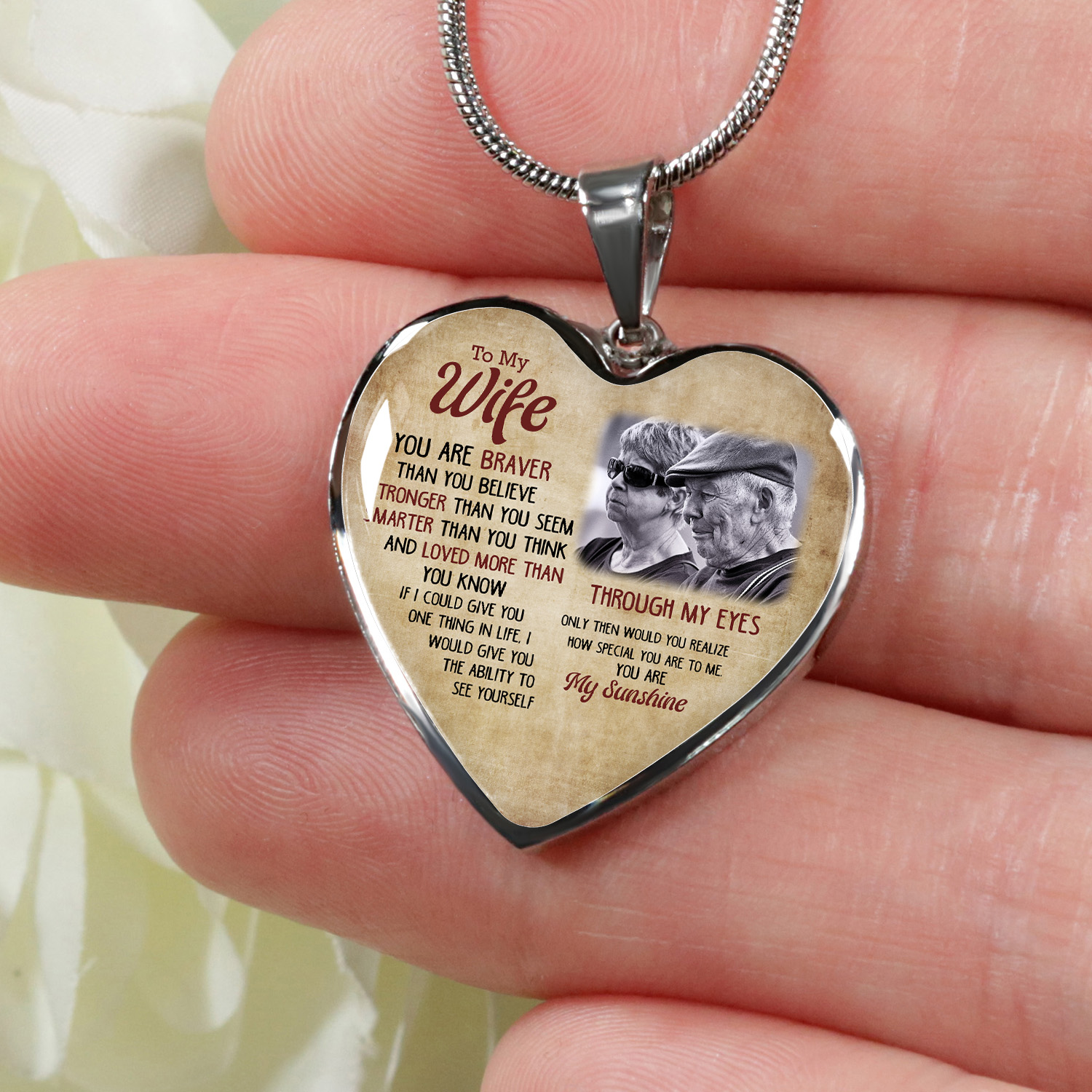 Let’s Shop Personalized Photo To My Wife You Are Braver Than You Believe Stronger Than You Seem Heart Necklace-Bangle!