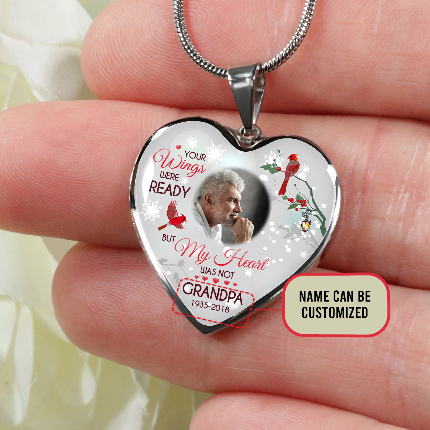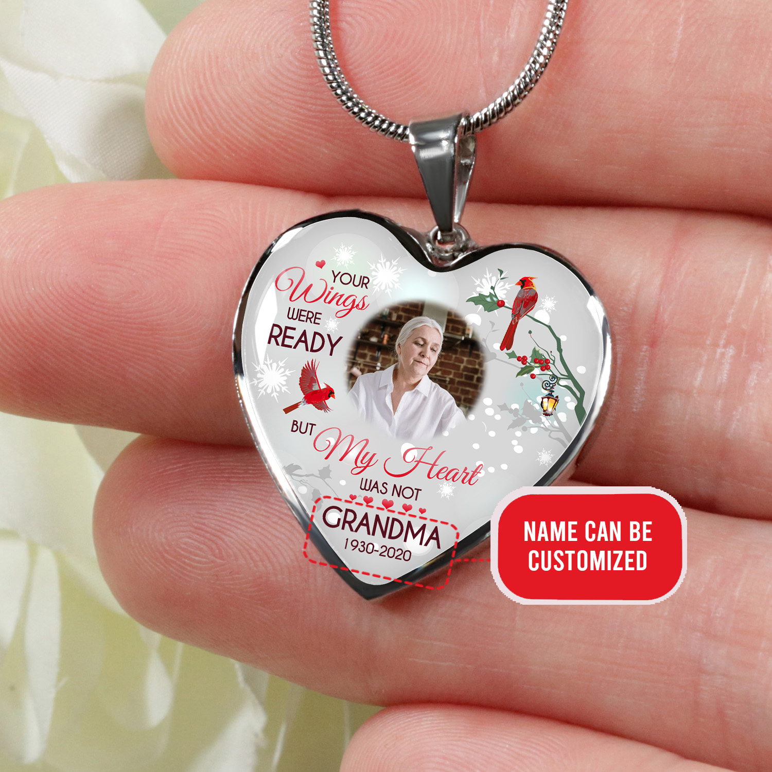 Let’s Shop Personalized Photo Cardinals Saying Your Wings Were Ready Heart Pendant Necklace Bangle – But My Heart Was Not Cardinal Bird Heart Pendant Necklace – Bangle!