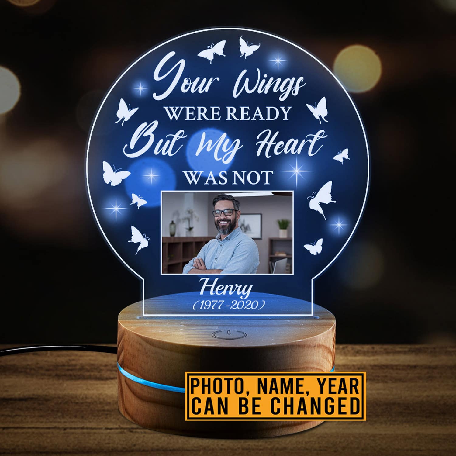 Let’s Shop Personalized Photo Your Wings Were Ready But My Heart Was Not Led Night Light Multi Color Bedroom Decor!