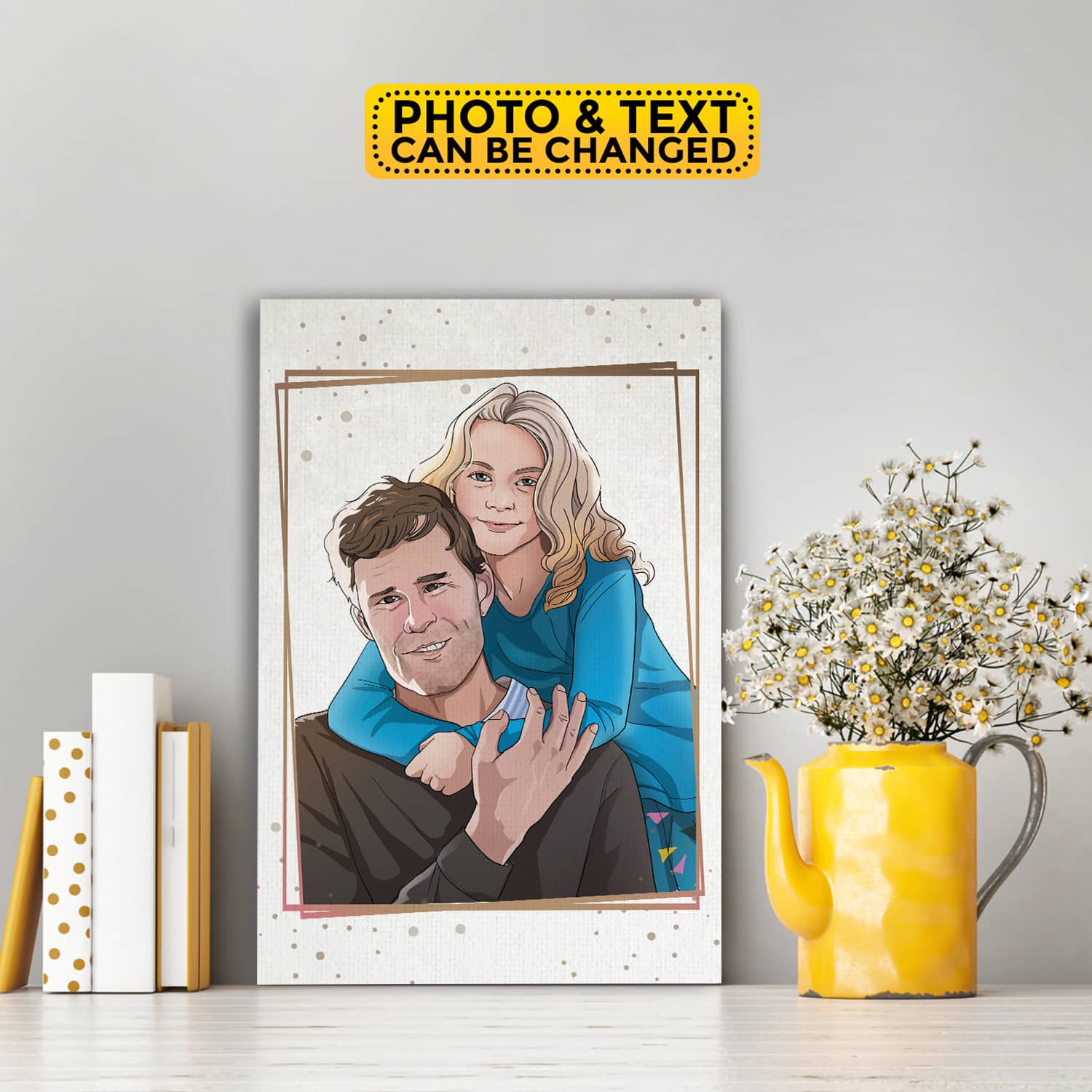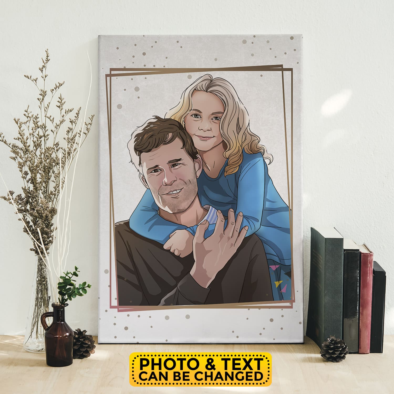 Let’s Shop Personalized Portrait from Photo Dad Son Daughter Framed Canvas Poster – Custom Drawing Family Fathers Day Gift!