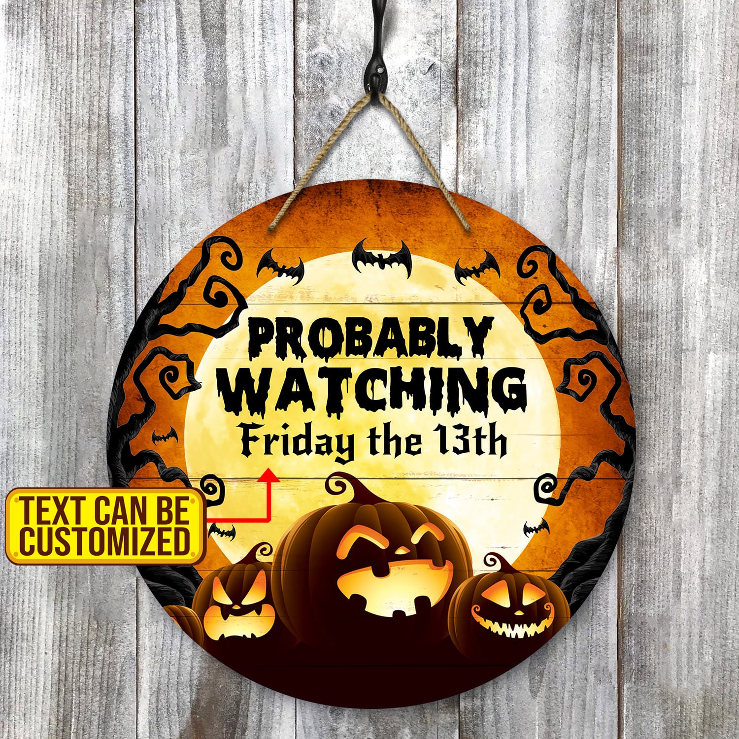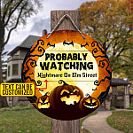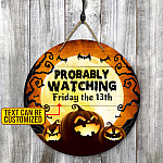 Let’s Shop Personalized Probably Watching Halloween Movie Circle Wooden Door Sign – Funny Horror Movies Front Porch Signs Indoor Outdoor Decor!