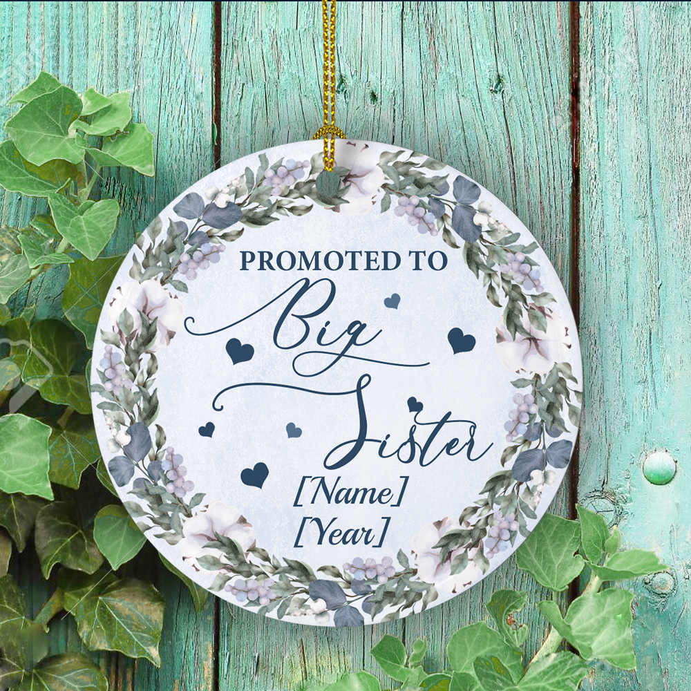 Let’s Shop Personalized Promote To Big Sister Flower Christmas Ornament Keepsake – Holiday Flat Circle Ornament Gifts!