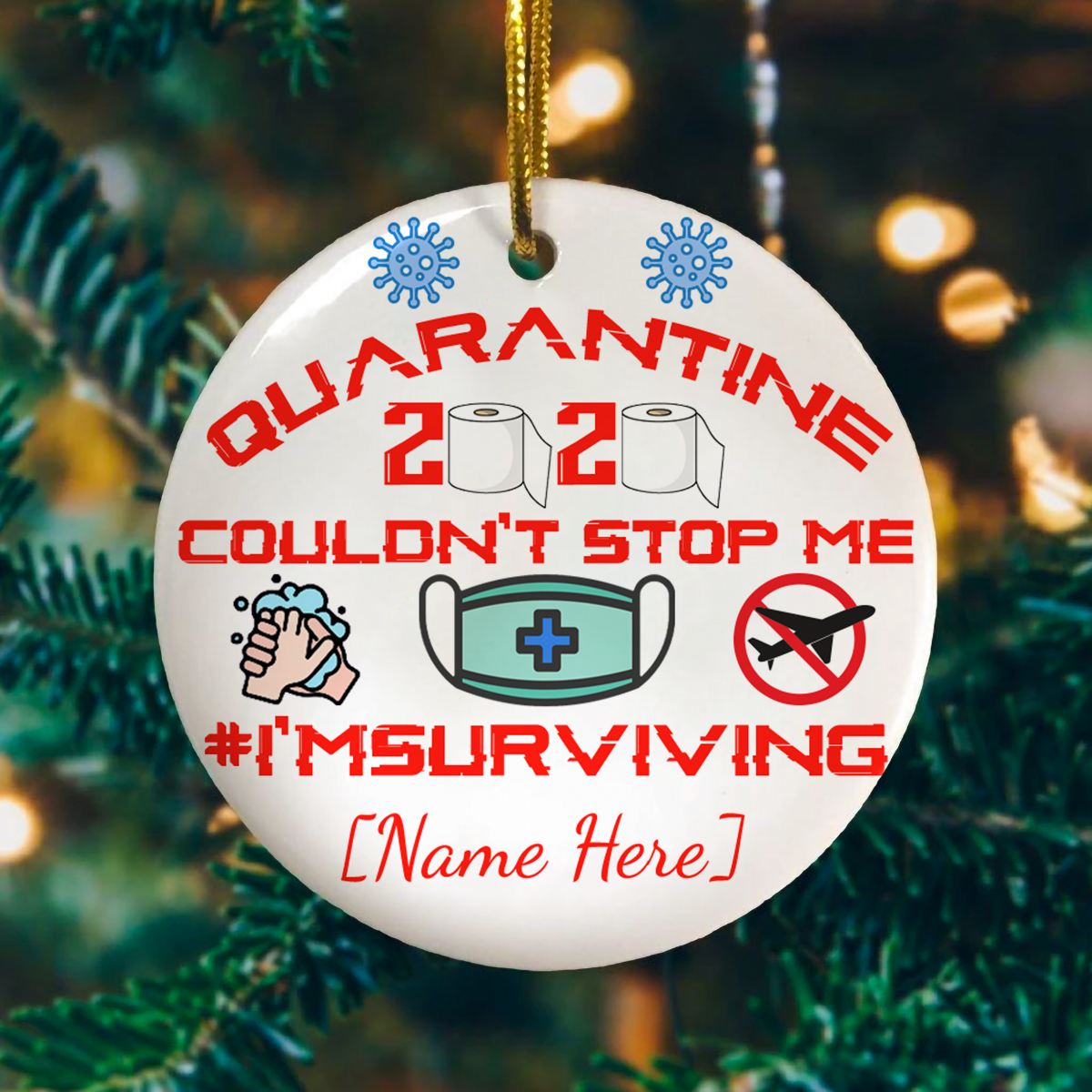 Let’s Shop Personalized Quarantine 2020 Couldn’t Stop Me I’m Surviving Decorative Christmas Ornament – Circle Ornament!