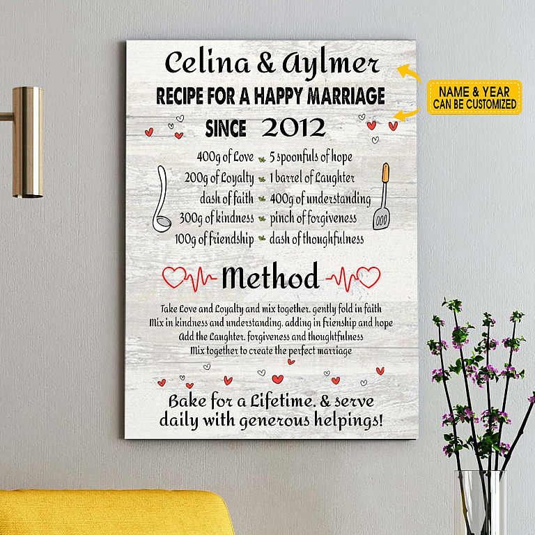 Let’s Shop Personalized Recipe for A Happy Marriage Framed Canvas Prints – Unframed Poster – Home Decor Wall Art!