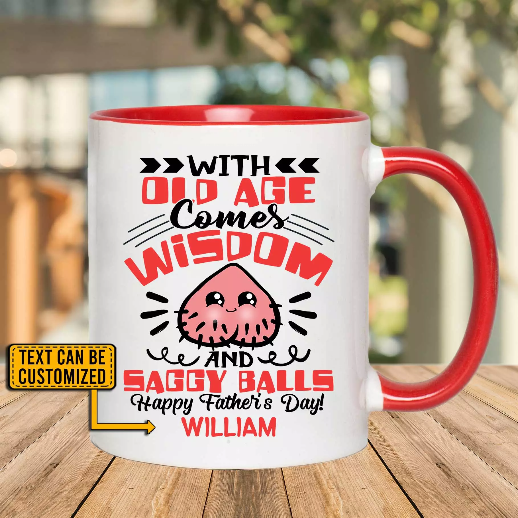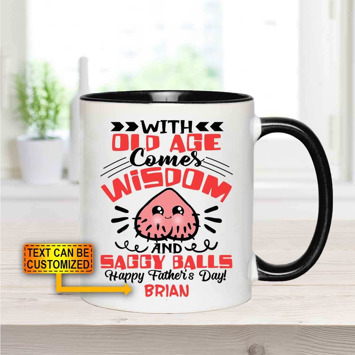 Let’s Shop Personalized With Old Age Comes Wisdom And Saggy Balls Accent Ceramic Coffee Mug!