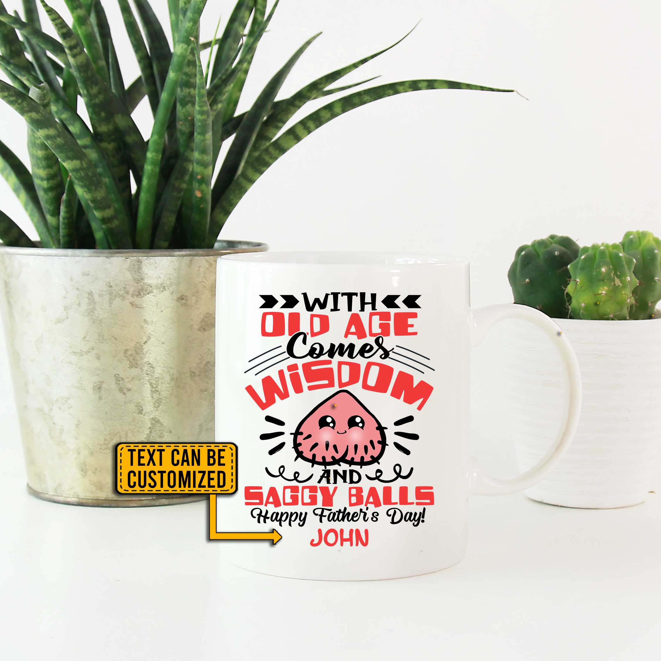 Let’s Shop Personalized With Old Age Comes Wisdom And Saggy Balls Ceramic Coffee Mug – Water Bottle – Color Changing Mug!