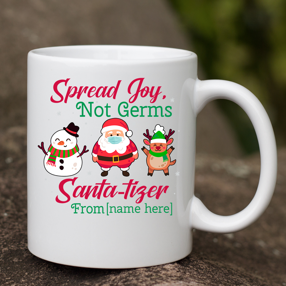 Let’s Shop Personalized Santatizer Spread Joy Not Germs Christmas Ceramic Coffee Mug – Beer Stein – Water Bottle!