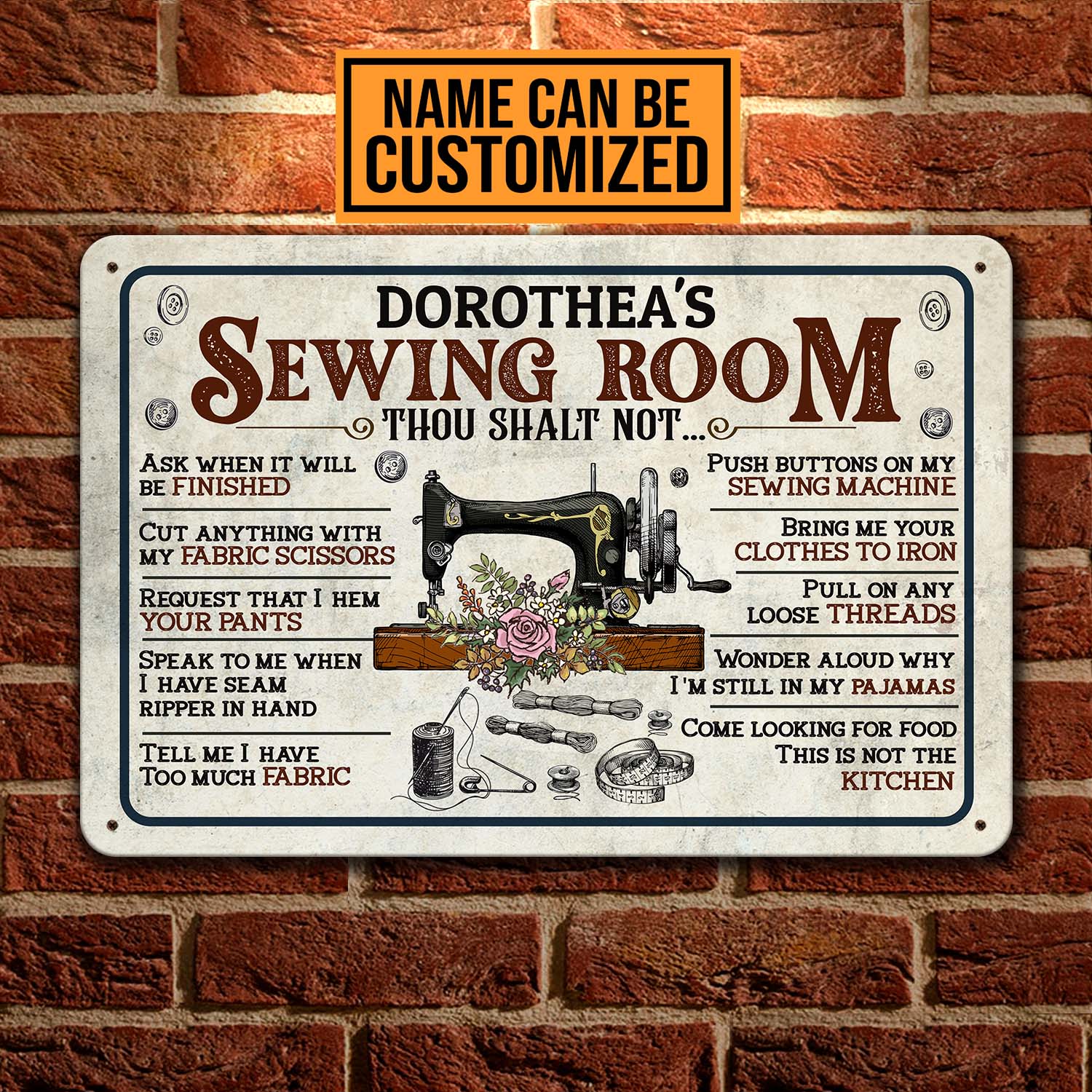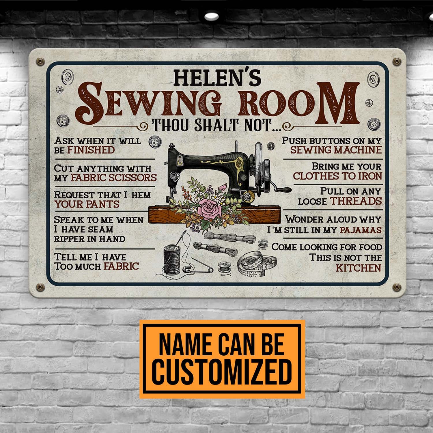 Let’s Shop Personalized Sewing Room Thou Salt Not Ask When It Will Be Finished Decorative Indoor Metal Sign!