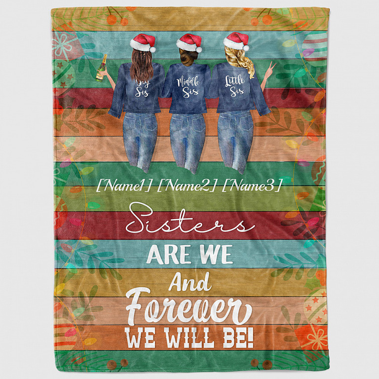 Let’s Shop Personalized Sisters Are We And Forever We Will Be Christmas Best Friends Fleece Blanket – Premium Sherpa Blanket!