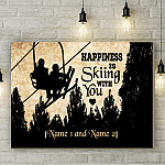 Let’s Shop Personalized Skiing Lover Couple Framed Canvas – Happiness Is Skiing with You Unframed Poster!