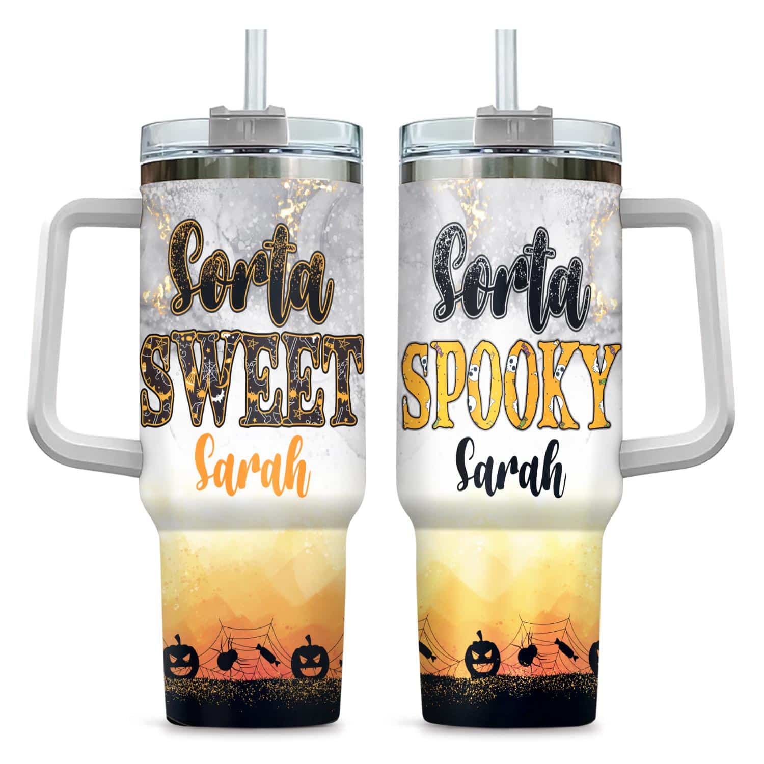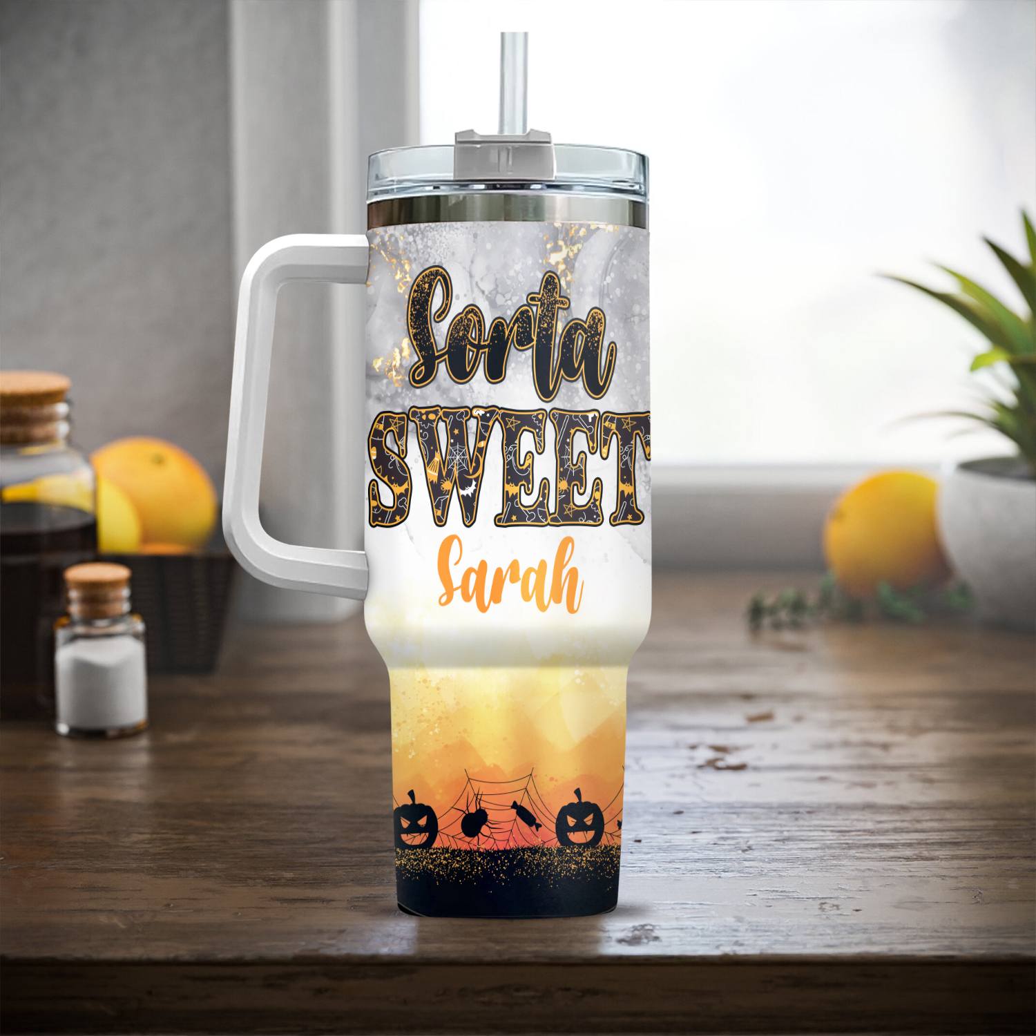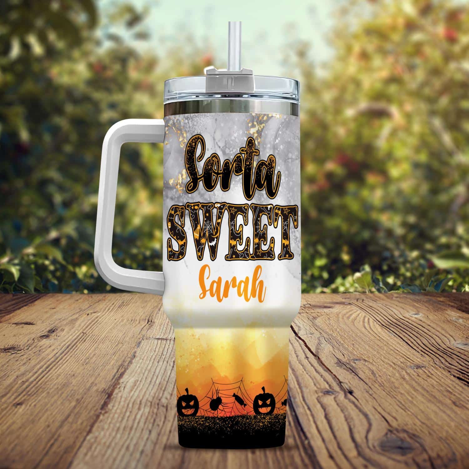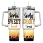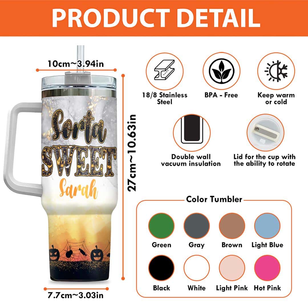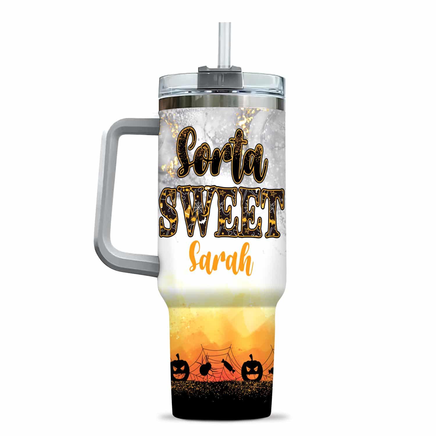 Let’s Shop Personalized Sorta Sweet Spooky Pumpkin Halloween Insulated Tumbler Cup With Handle and Straw!