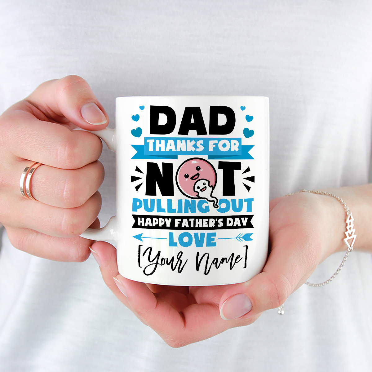 Shop Personalized Dad Thanks For Not Pulling Out Happy Father’s Day Coffee Mug – Beer Stein – Funny Gift for Father.
