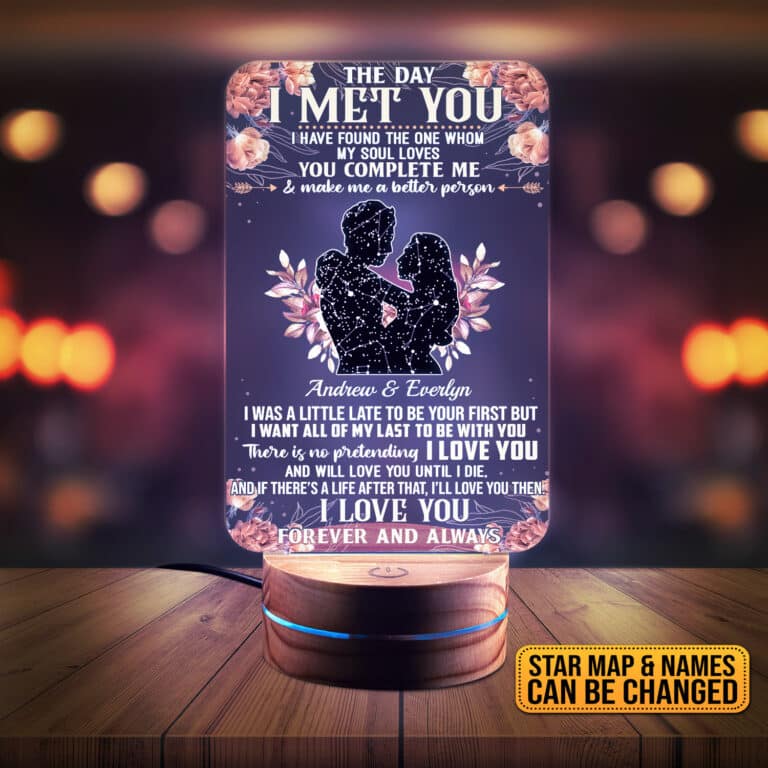 Are you spending too much time to find creative merchandise for you or suitable & special gifts for your mommy, your daddy, your son, your daughter, your children, your friends or someone you love? The struggle is over because we have personalized star map night light, custom name love couple gifts, the day i met you gifts, the day i met you led light, the day i met you wall art, personalized couple led light, custom love led light, custom wife gifts, custom wife led light will make perfect presents for your beloveds. In order to make your present stand out, we have created lots of unique and awesome customized photo gifts & personalized designs.