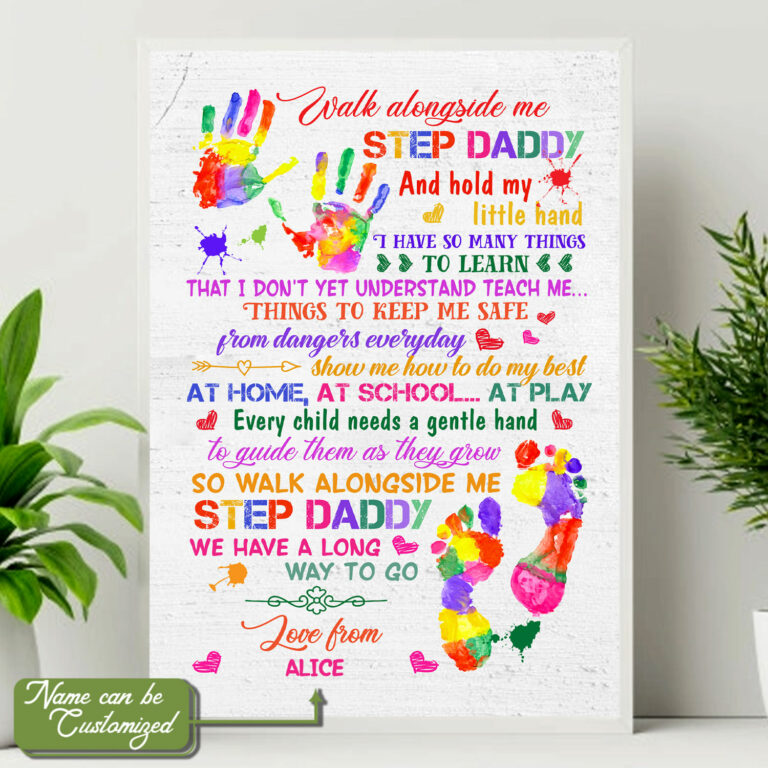 Let’s Shop Personalized Step Dad Walk Alongside Me Step Daddy Framed Canvas – To My Bonus Dad Unframed Poster!