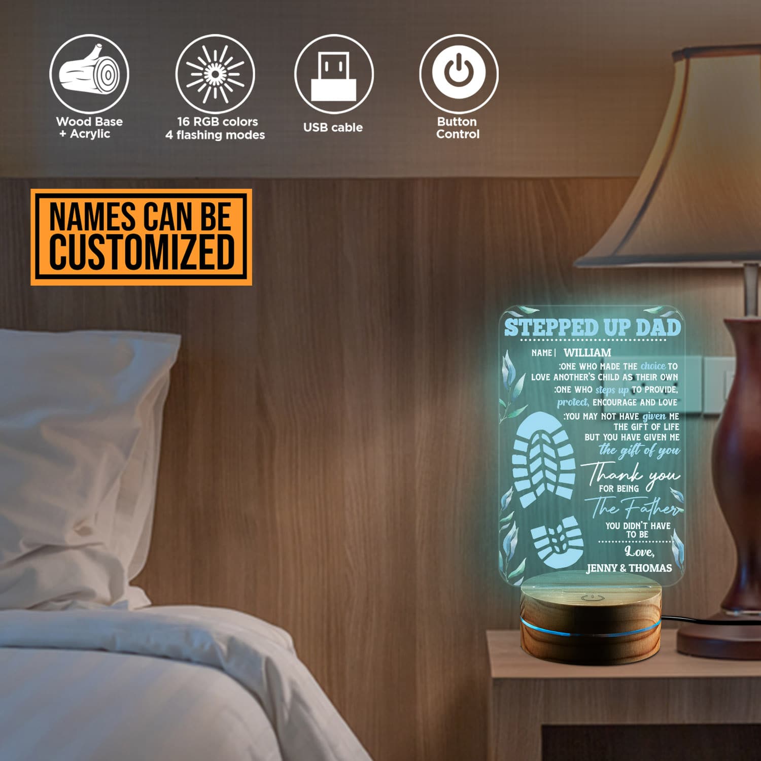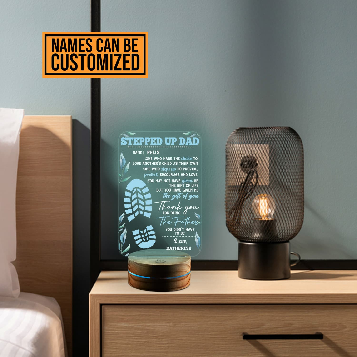 Let’s Shop Personalized Stepped Up Dad LED Night Light, Happy Fathers Day Gifts, Best Gift for Step Dad, Custom Name Stepdad Birthday Gift!
