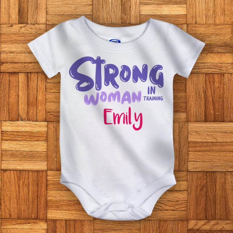 Let’s Shop Personalized Strong Woman Bodysuit Strong Woman in Training Baby Onesie – Toddler Baby Infant Bodysuit!