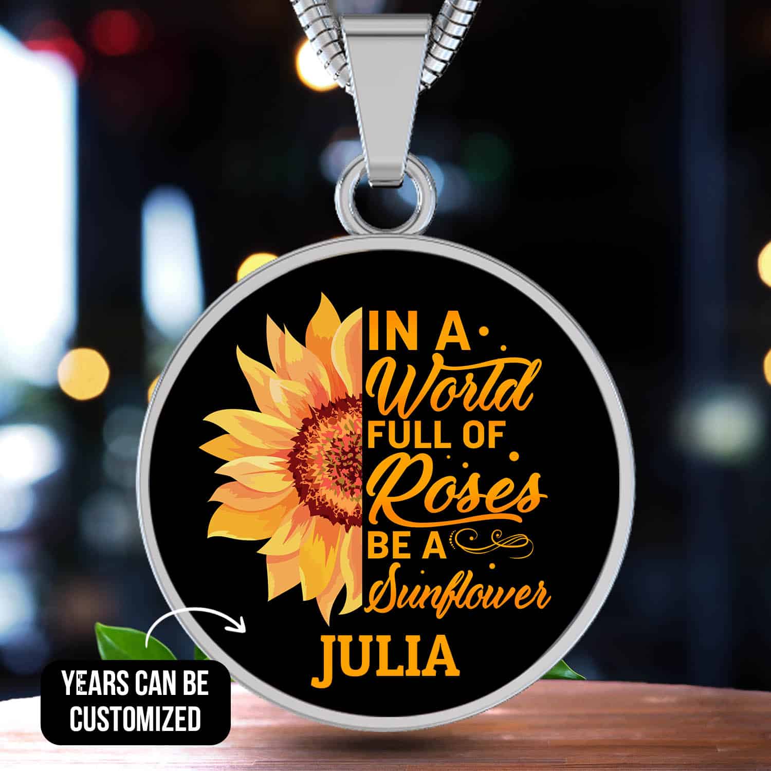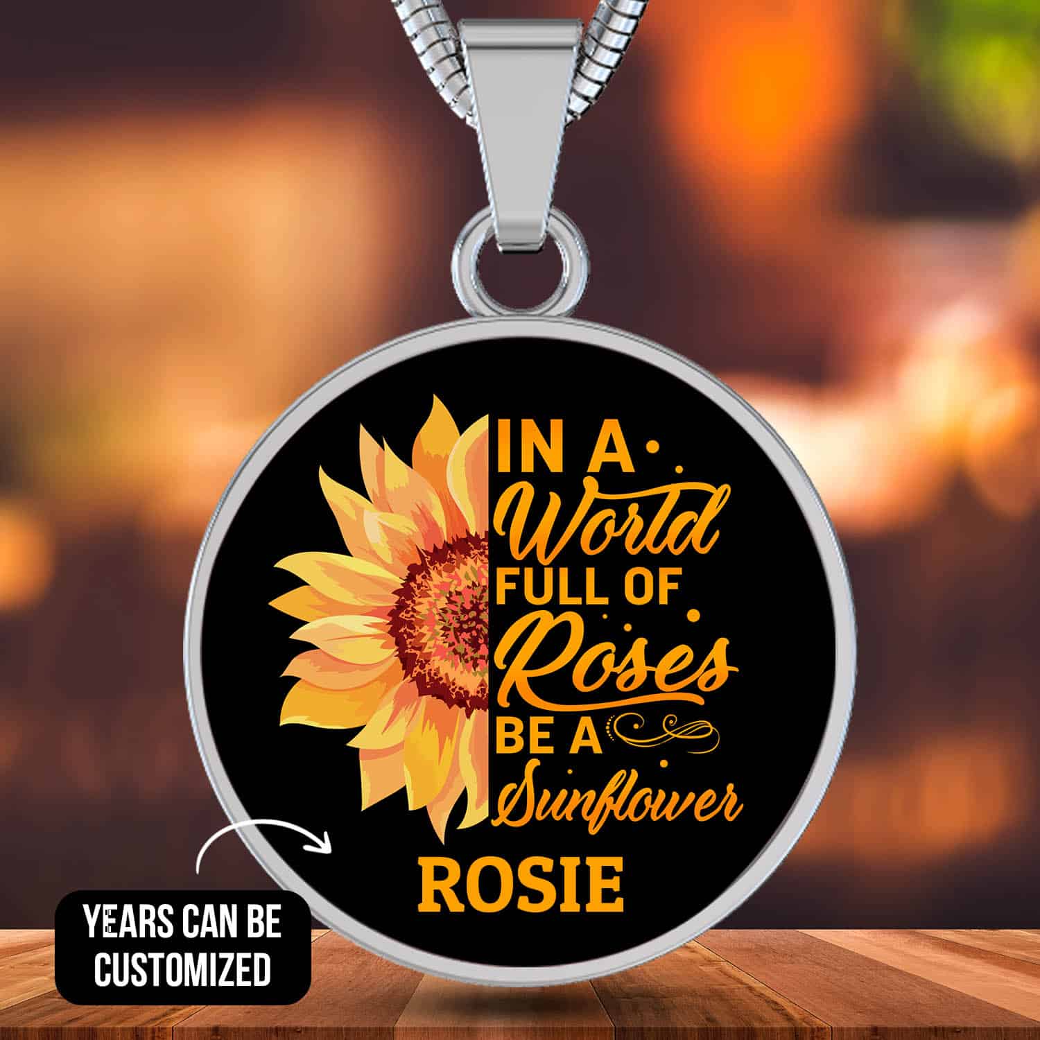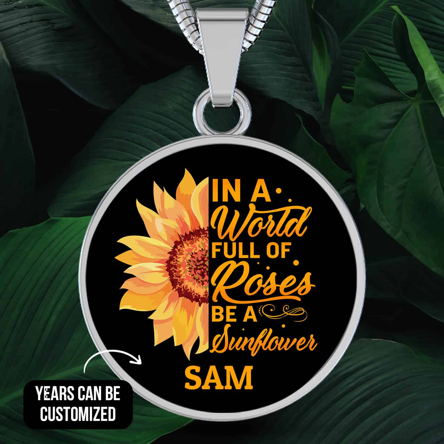 Let’s Shop Personalized In A World Full Of Roses Be a Sunflower Circle Pendant Necklace – Bangle!