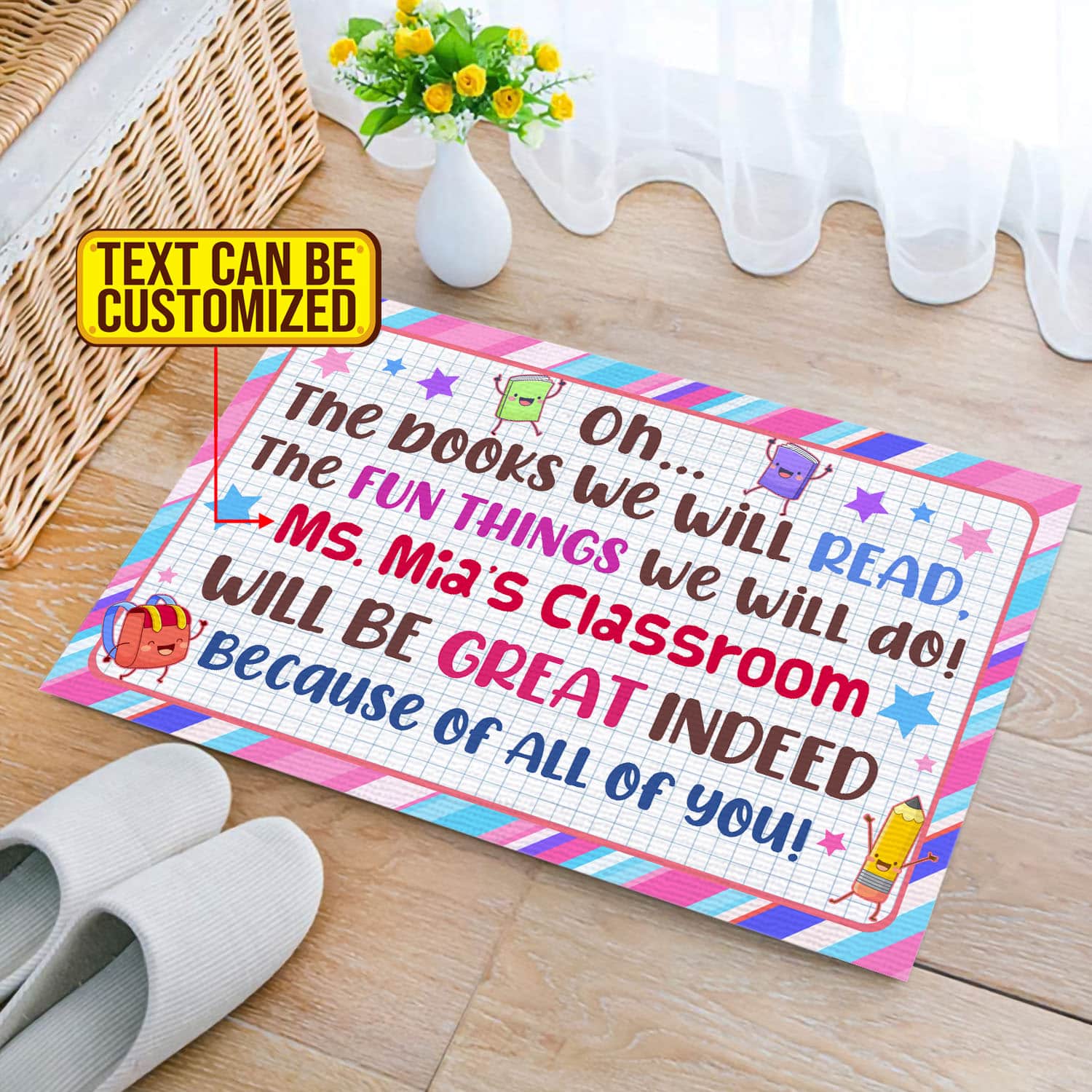 Let’s Shop Personalized Name Teacher The Book We Will Read Classroom Indoor Doormat – Custom Teacher Doormat Outdoor!