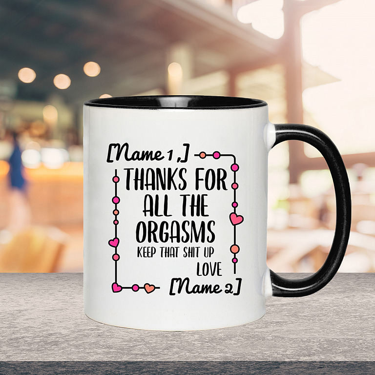 Let’s Shop Personalized Thanks for All the Orgasms Valentine Naughty Couple Accent Coffee Mug!