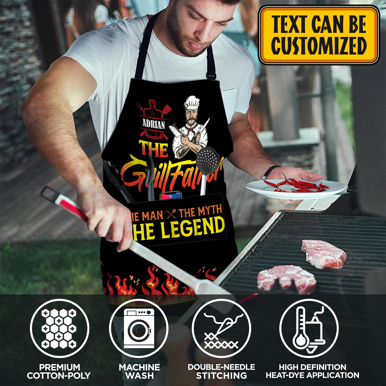 Let’s Shop Personalized The GrillFather The Man The Myth Legend Three Pocket Apron – Aprons For Men Grill Cooking BBQ Kitchen Chef Apron!