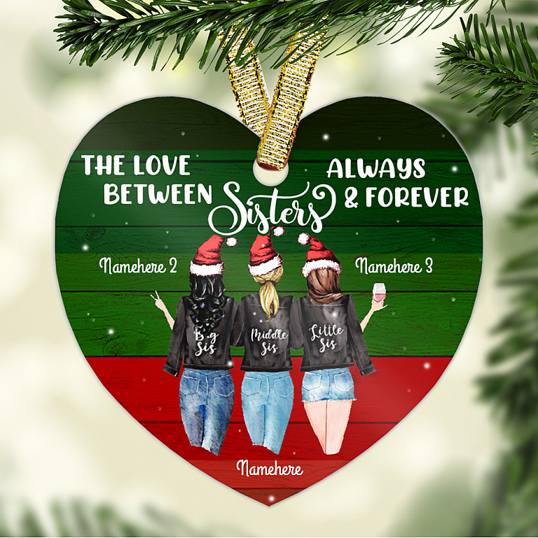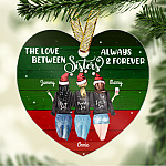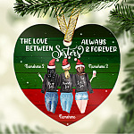 Let’s Shop Personalized the Love Between Sister Always and Forever Sister Christmas Flat Holiday Heart Ornament!