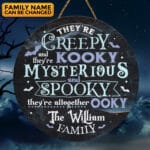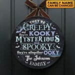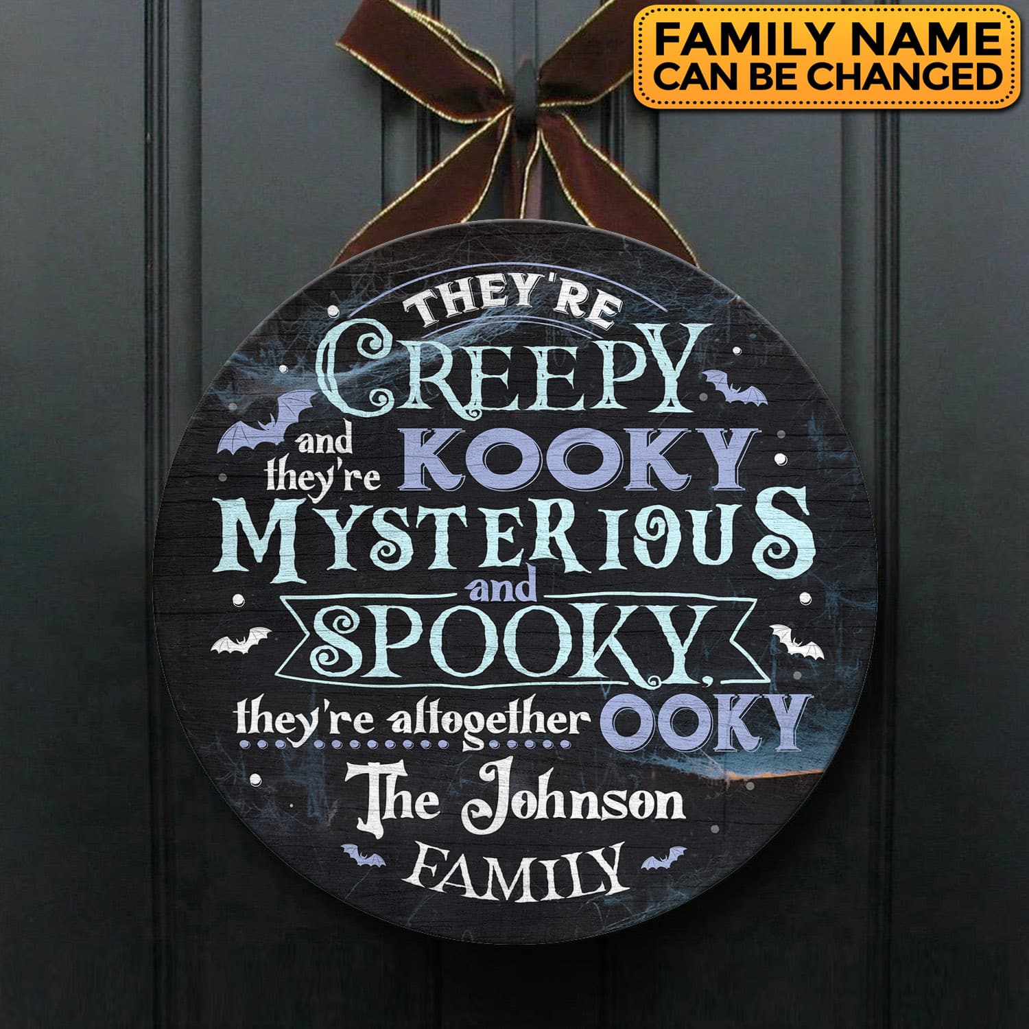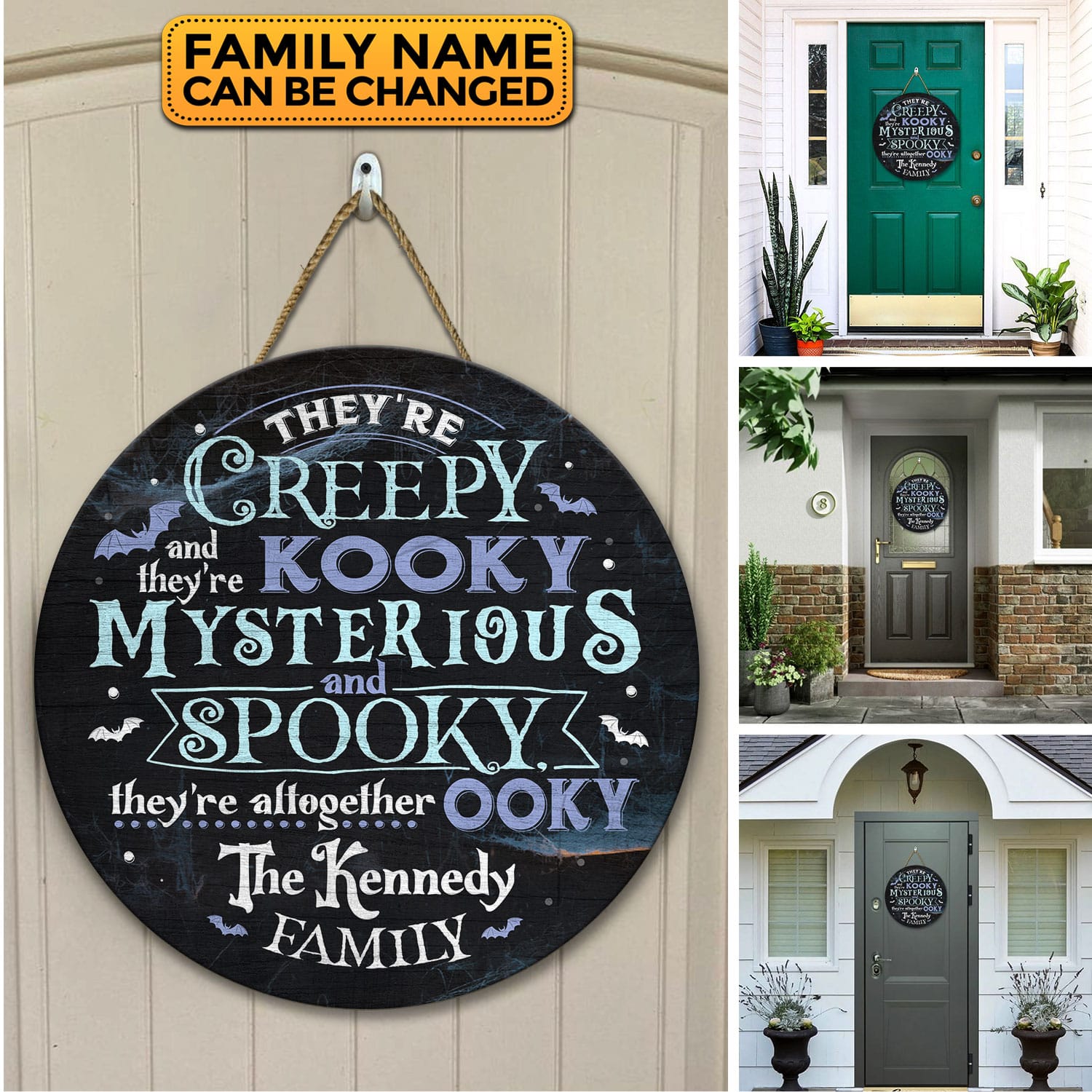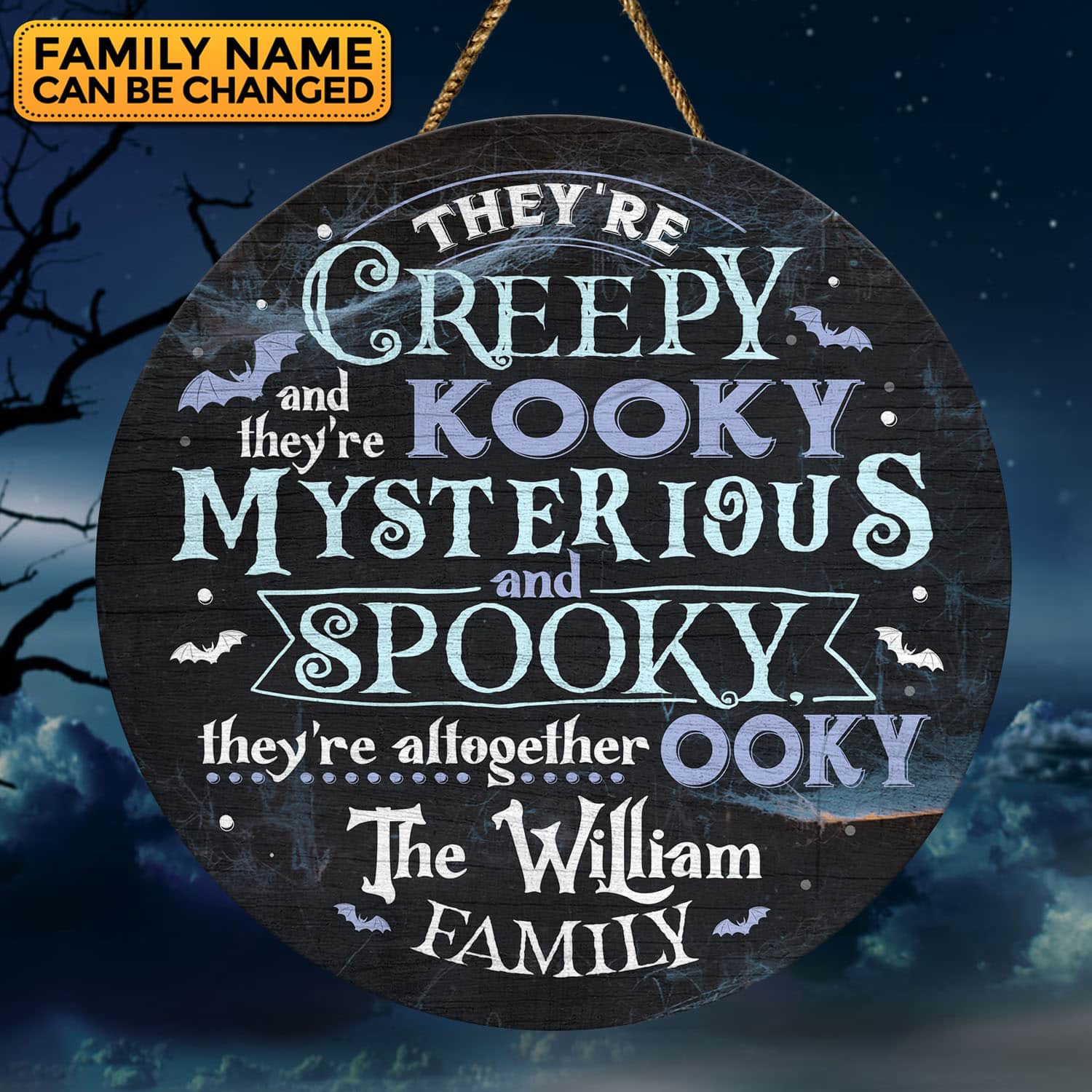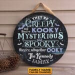 Let’s Shop Personalized They’re Creepy And They’re Kooky Mysterious And Spooky Funny Halloween Circle Wooden Door Sign!
