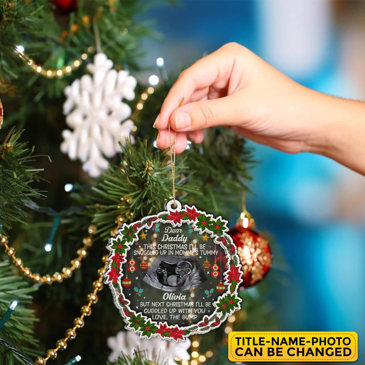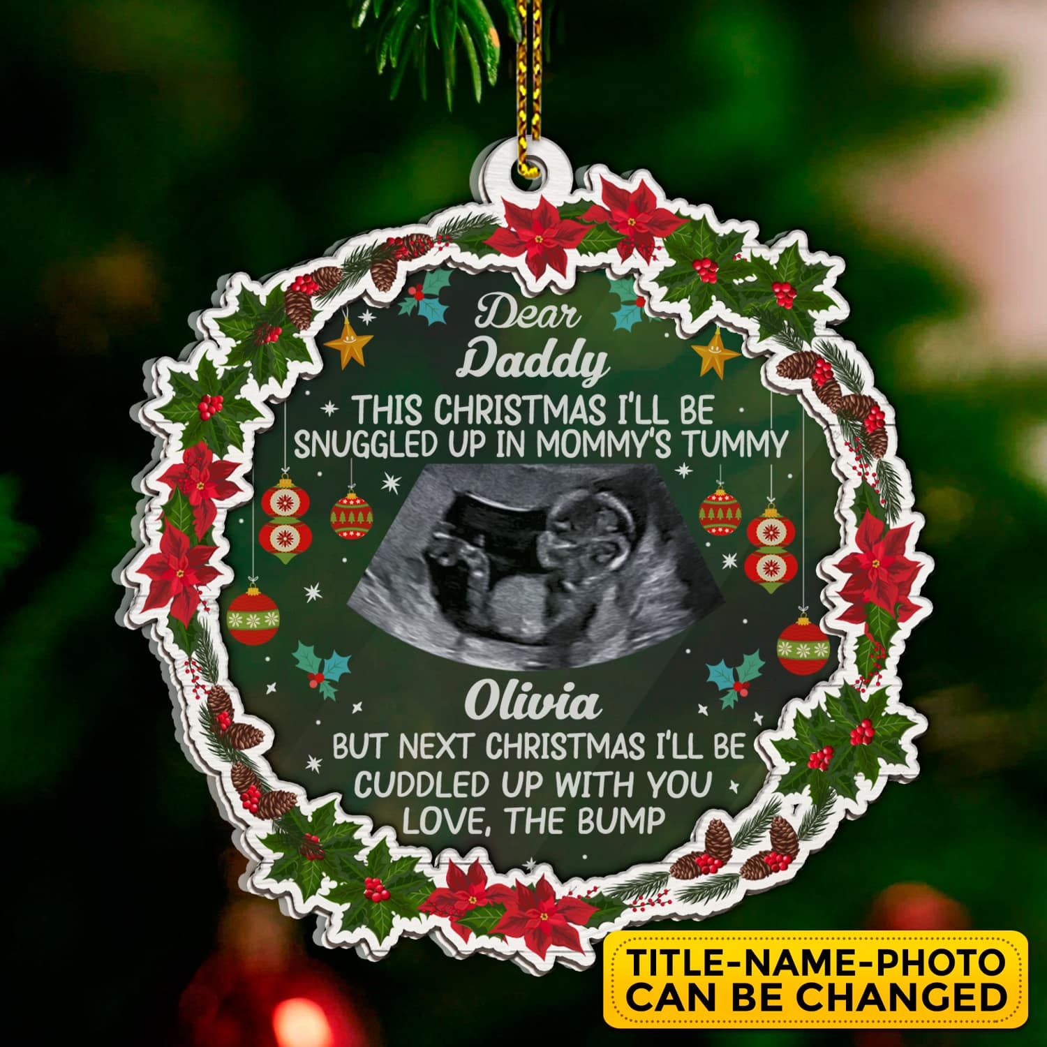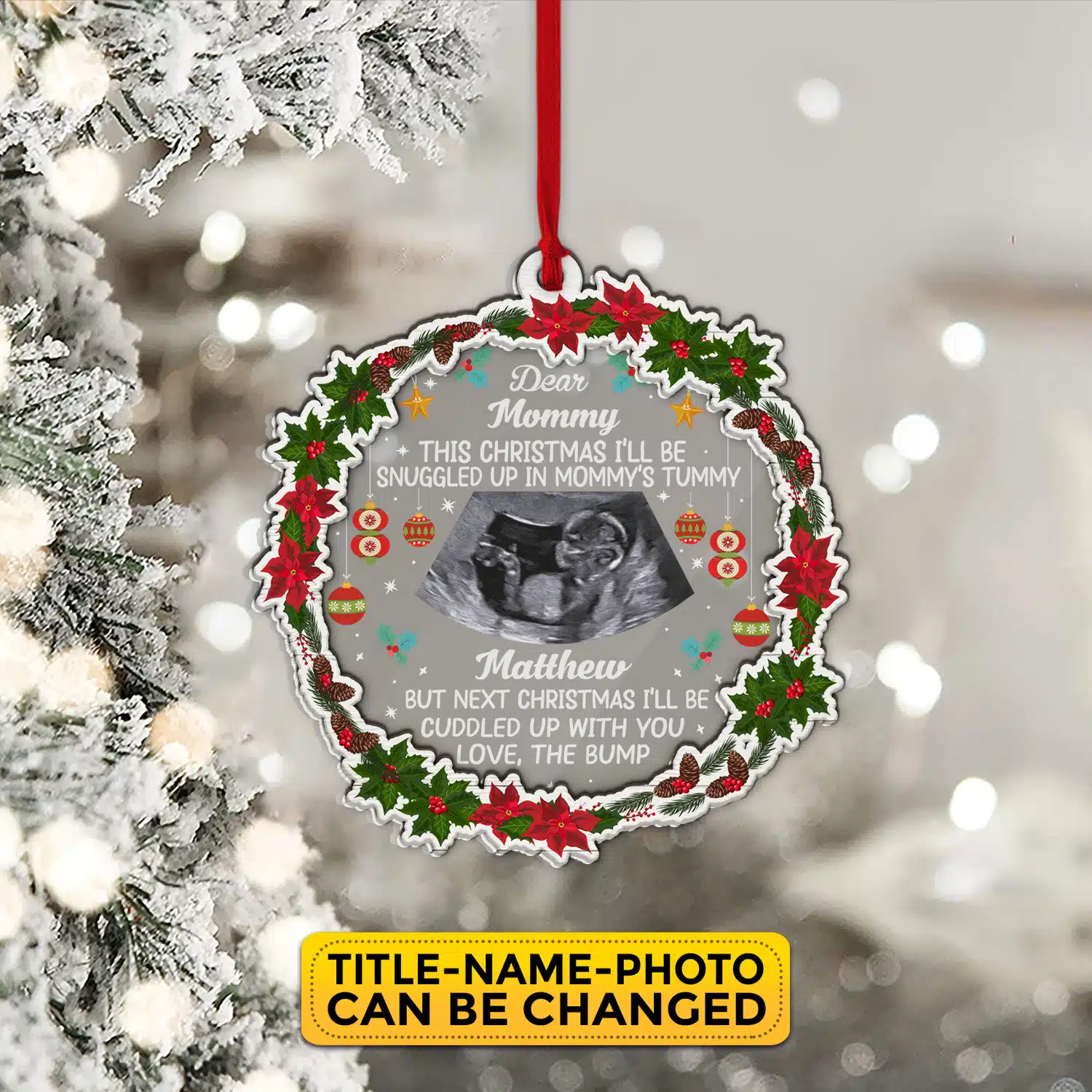Let’s Shop Personalized This Christmas I’ll Be Snuggled Up In Mommy’s Tummy Baby Expecting Acrylic Wood Ornament Keepsake!