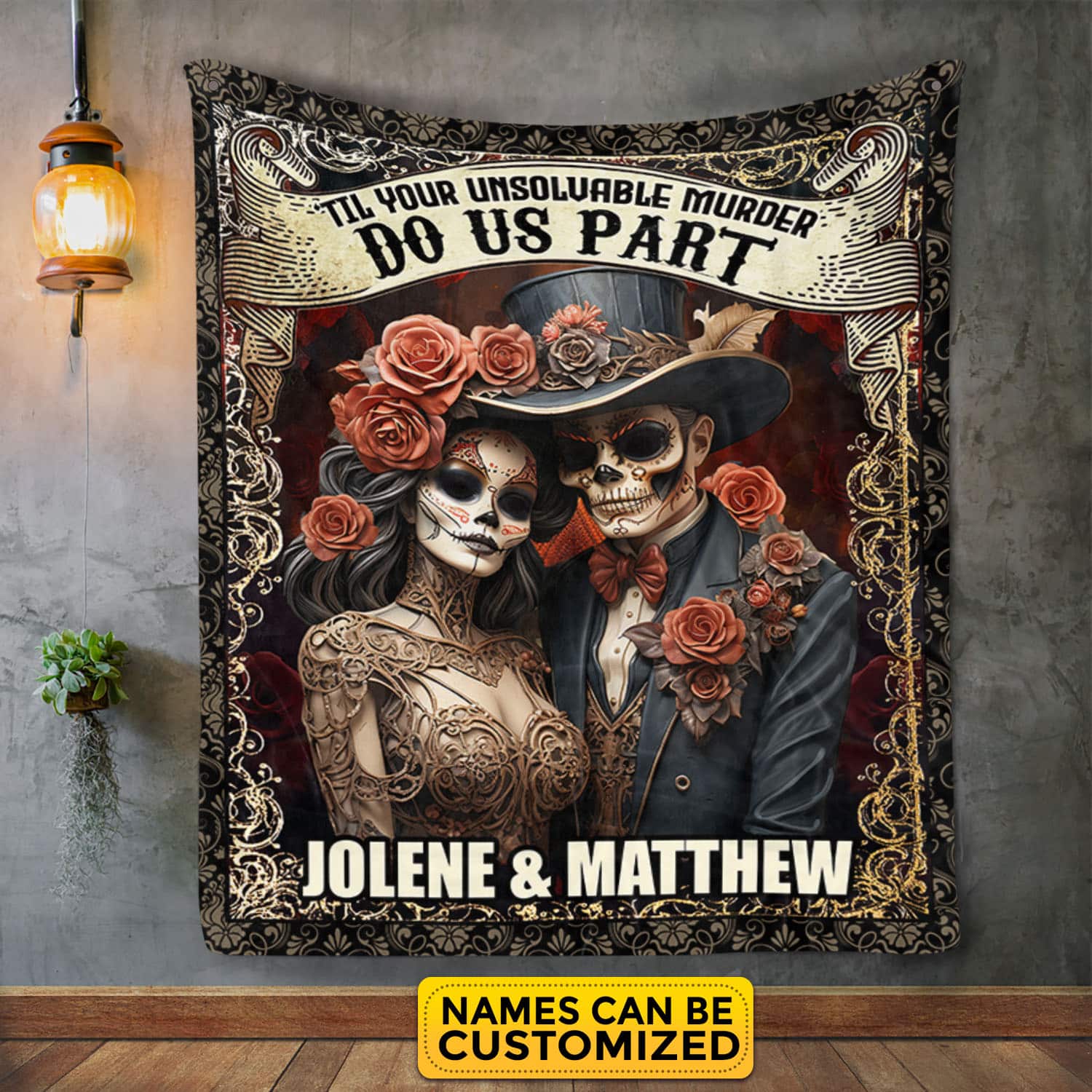 Let’s Shop Personalized Til Your Unsolvable Murder Do Us Part Couple Halloween Fleece Blanket – Woven Blanket!