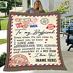 Shop Personalized To My Boyfriend Even When I’m Not Close by – Letter Fleece Blanket – Premium Sherpa Blanket – Woven Blanket.