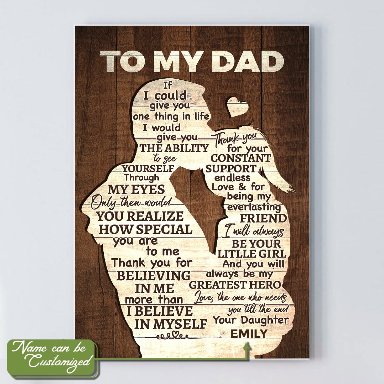 Are you spending too much time to find creative merchandise for you or suitable & special gifts for your mommy, your daddy, your son, your daughter, your children, your friends or someone you love? The struggle is over because we have various Personalized Canvas for Dad, Personalized Dad Canvas, Personalized Gifts for Dad Canvas, Personalized Wall Art for Dad, Personalized Daughter and Dad Wall Art, Fathers Day Gifts for Dad Photo Canvas, Photo Canvas for Dad, Dad Custom Photo Canvas, Dad Photo Canvas which will make perfect presents for your beloveds. In order to make your present stand out, we have created lots of unique and awesome customized photo gifts & personalized designs.