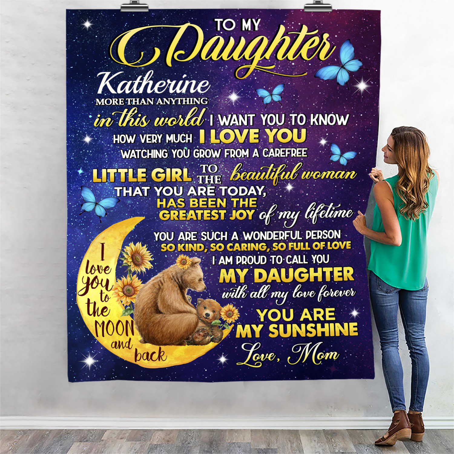 Let’s Shop Personalized to Daughter Bear I Am Proud to Call You My Daughter and My Sunshine Fleece Blanket – Mink Sherpa Blanket!