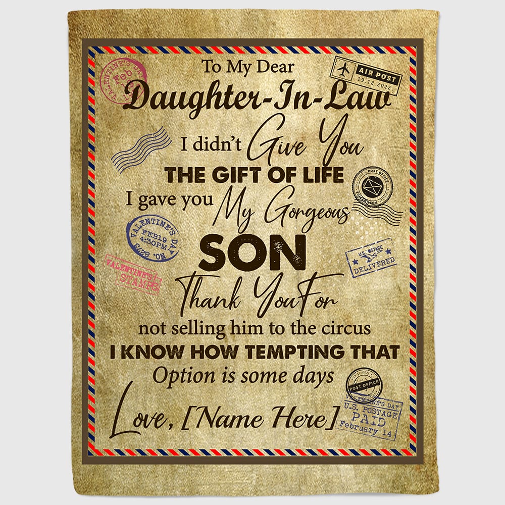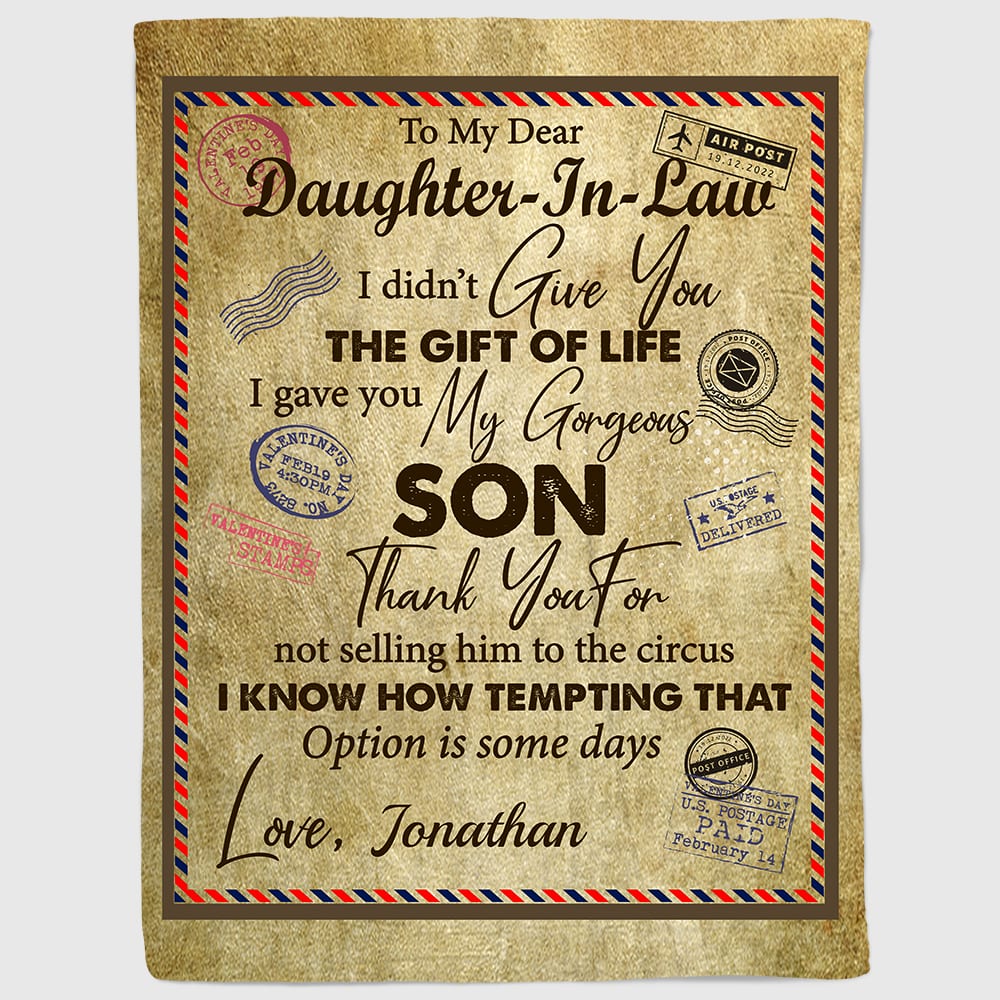Let’s Shop Personalized To My Dear Daughter In Law I Didn’t Give You The Gift Of Life Letter Fleece Blanket-Mink Sherpa Blanket!