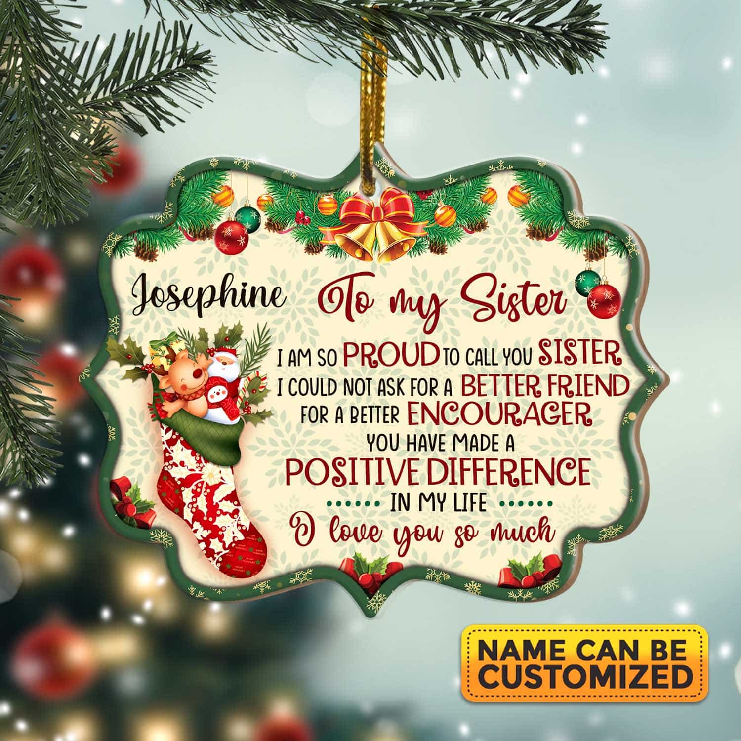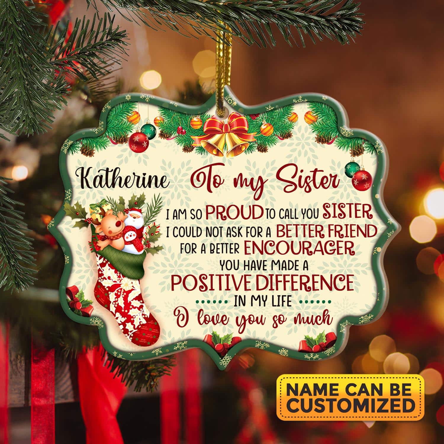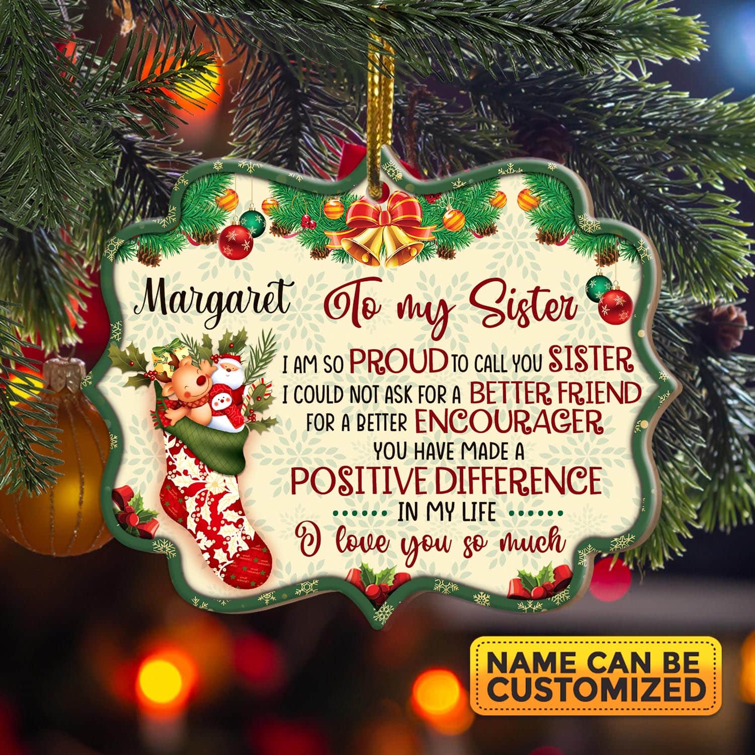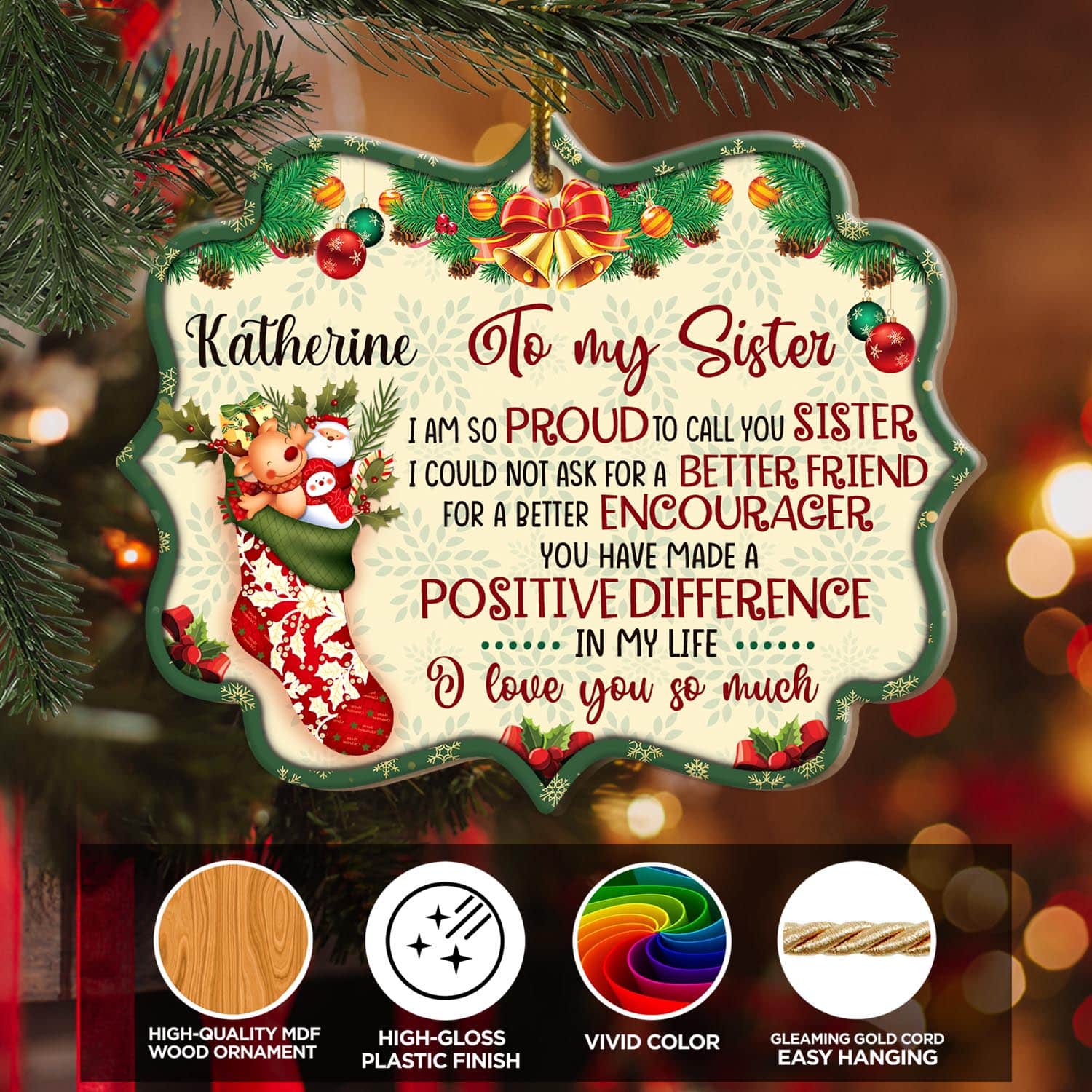 Let’s Shop Personalized To My Sister I Am So Proud To Call You Sister Custom Shaped Wooden Christmas Ornament Keepsake!