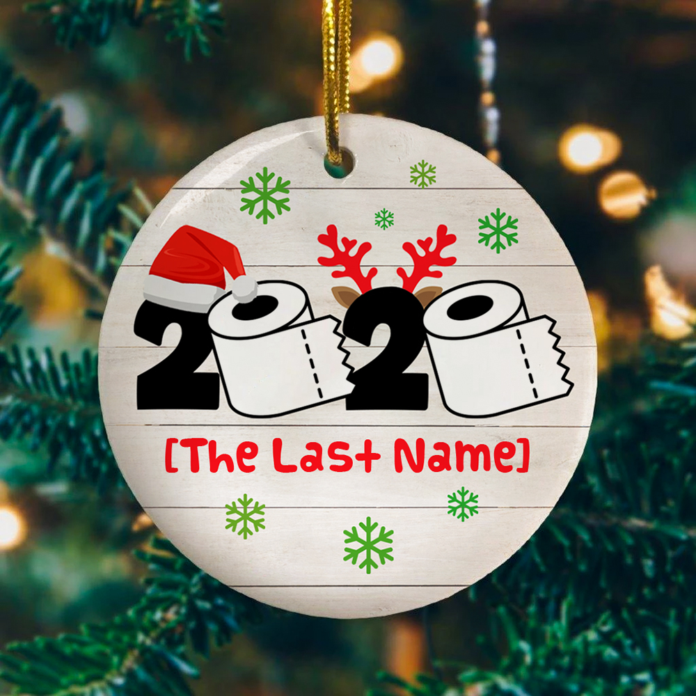 Let’s Shop Personalized Toilet Paper with Family Name Quarantine Pandemic Christmas Holiday Flat Circle Ornament Keepsake!