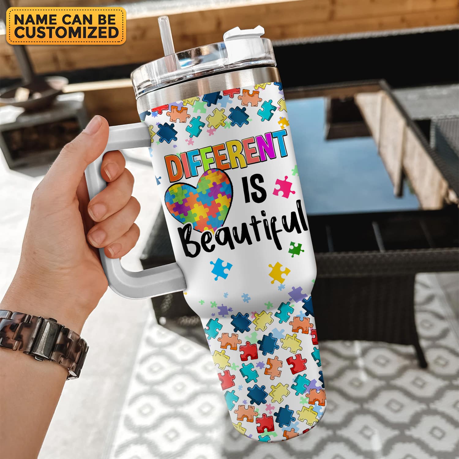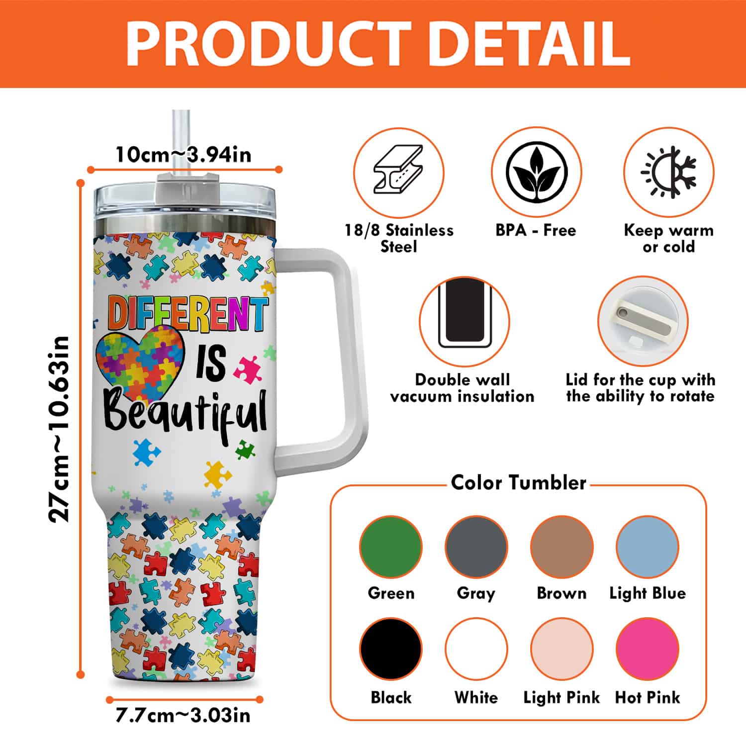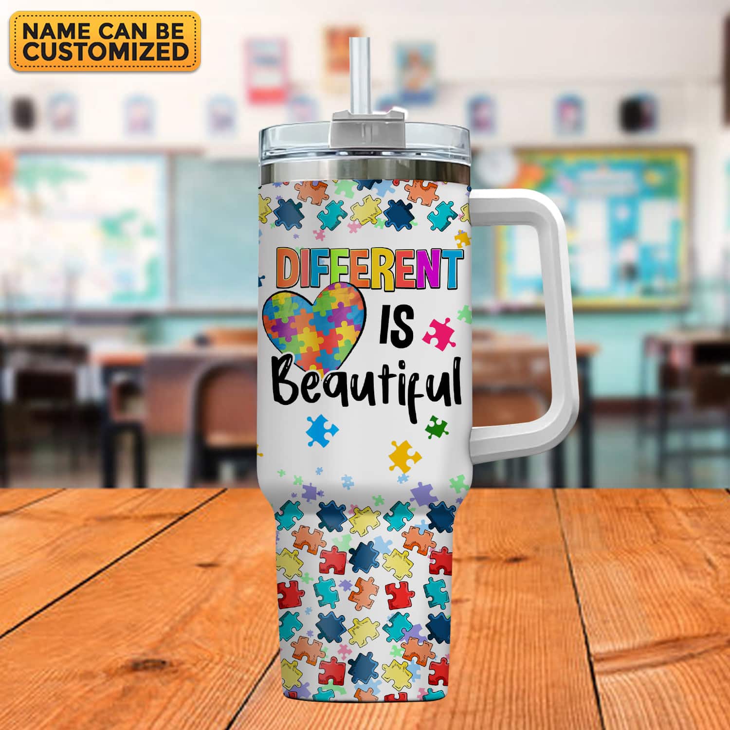 Let’s Shop Personalized Tumbler Autism Different Is Beautiful 40Oz Tumbler with Handle – Autism Awareness Tumbler Mug for Autistic People!