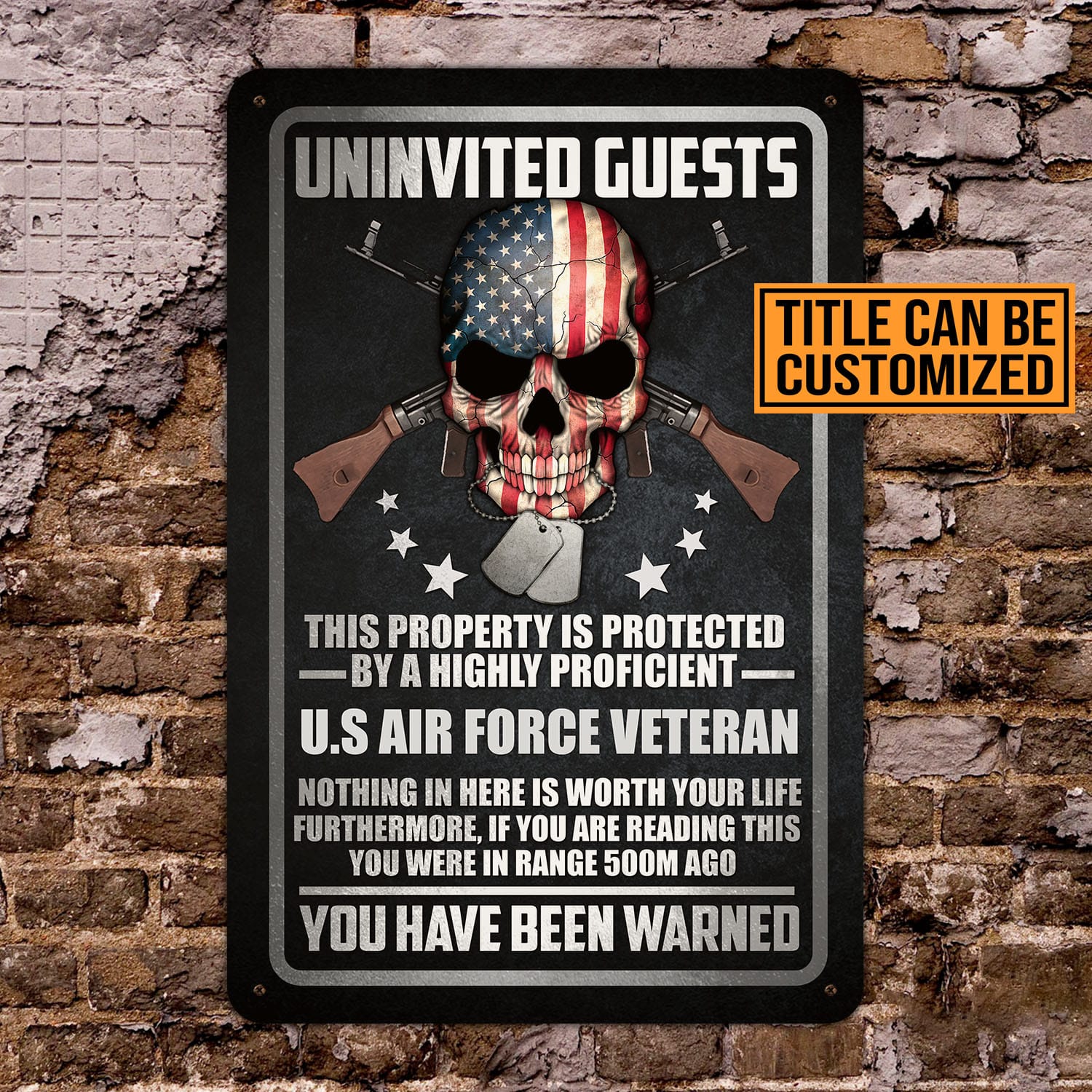 Let’s Shop Personalized Uninvited Guests This Property Is Protected By A Highly Proficient Veteran Decorative Metal Sign!