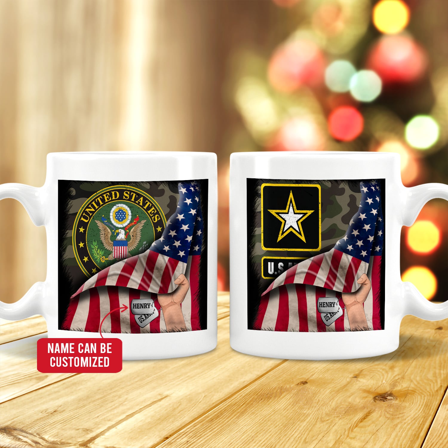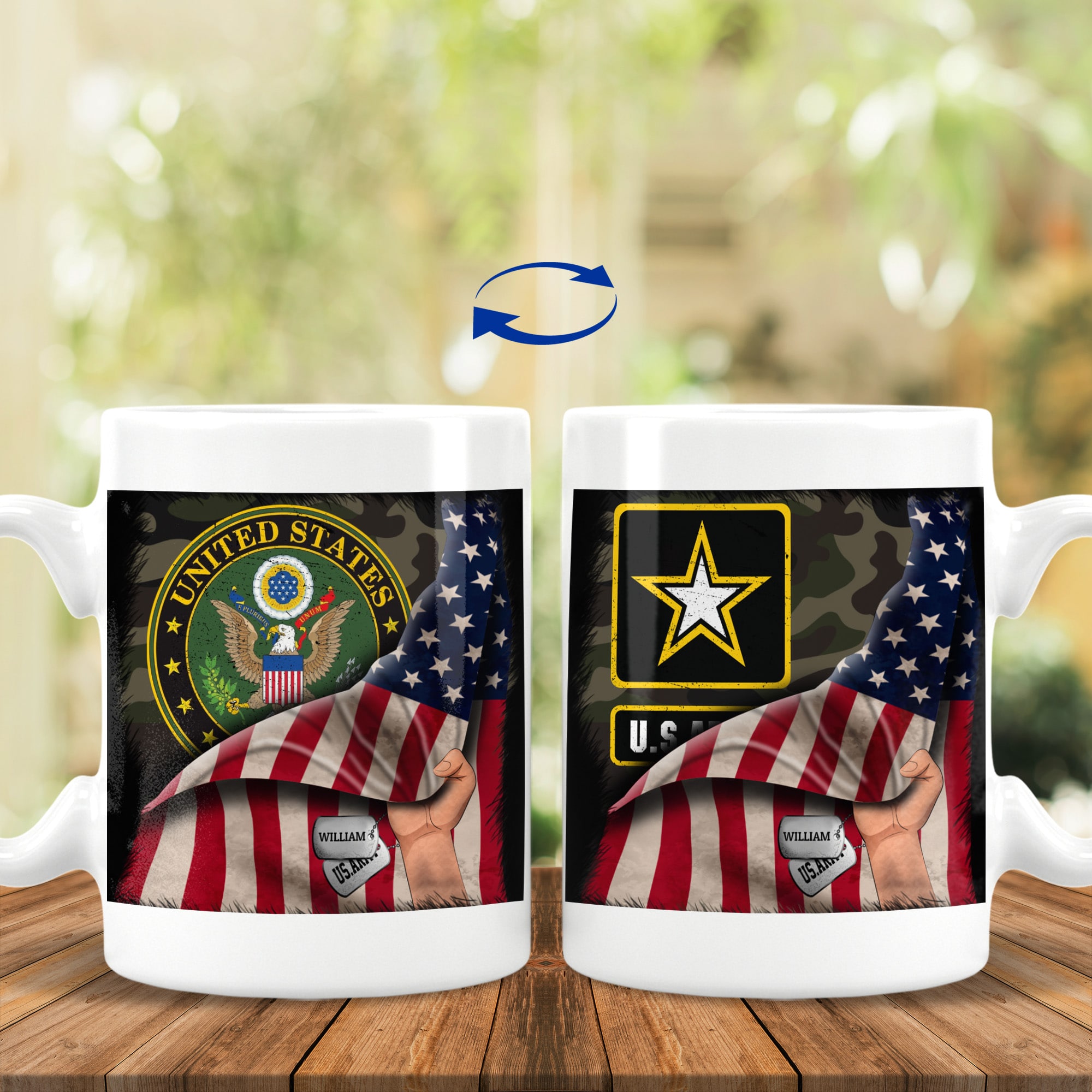 Personalized Name US Army Veteran Double-Sided Ceramic Coffee Mug - Beer Stein - Water Bottle - Color Changing Mug