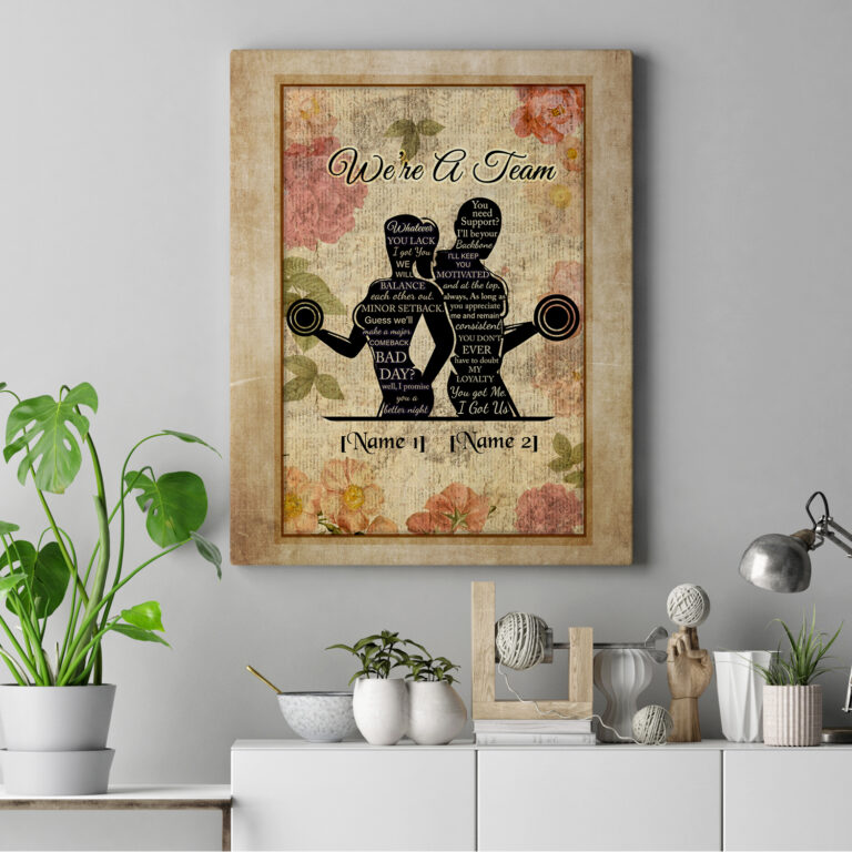 At CubeBik, besides canvases, we also offer tees, hoodies, sweaters, raglans, tanks, wall arts, posters, mugs, blankets, engraved jewelry, personalized necklaces, printed face masks, throw pillows, tote bags, hats, accessories and more on our website, so do not miss our other We’re a Team Wall Art, Valentines Day Gift for Husband, Personalized Anniversary Gifts for Husband, Weightlifting Canvas Wall Art, Vintage Gym Poster, Vintage Gym Decor, Personalized Anniversary Gifts for Her, Personalized Valentines Gifts for Him, Personalized Valentines Day Gifts for Him, Vintage Weightlifting Poster, Gym Posters, Weight Lifting Posters related merchandise. Moreover, all the products are made-to-order and one of a kind custom designs you can’t get elsewhere in normal stores. Let’s discover CubeBik.com now and find your favorite personalized items. We can’t wait to surprise and build beautiful memories with you and your loved ones.