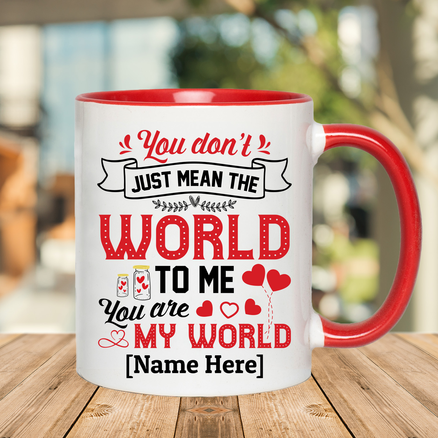 Let’s Shop Personalized You Are My World Accent Mug – Cute Valentines Mug For Her!